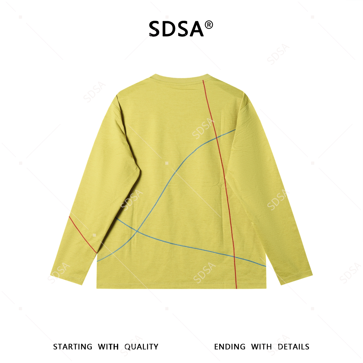 SDSA男装2026新款高贵轻奢韩版简约撞色缝线圆领长袖T恤百搭宽松