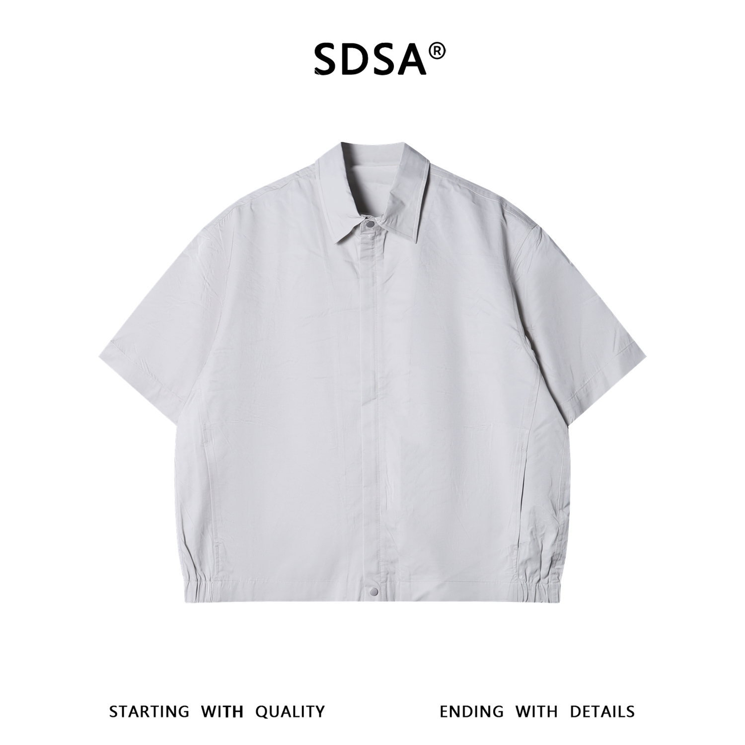 2623301SDSA男装2026新款高贵轻奢潮牌时尚纯色拉链翻领短袖衬衫宽松上衣