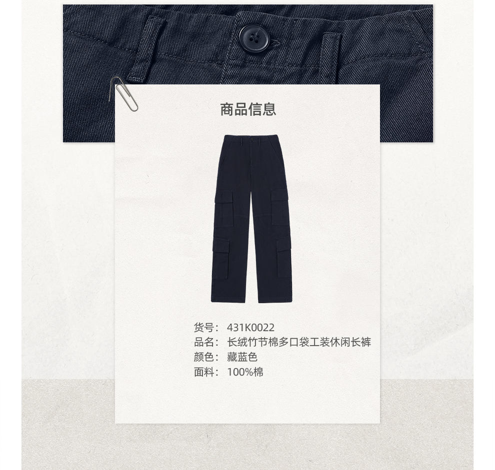 ROMI STUDIO“工装美学”*长绒竹节棉高士线绳染休闲裤 431K0022(现货)