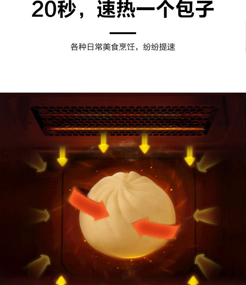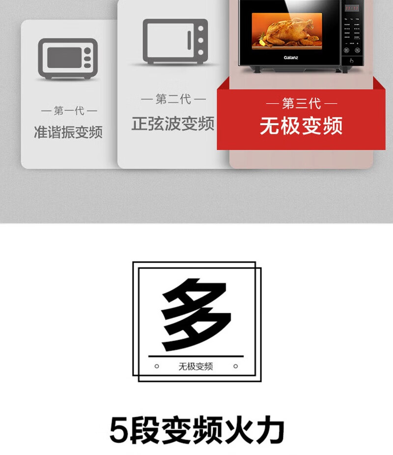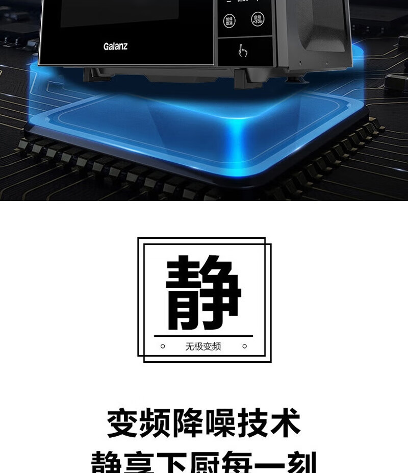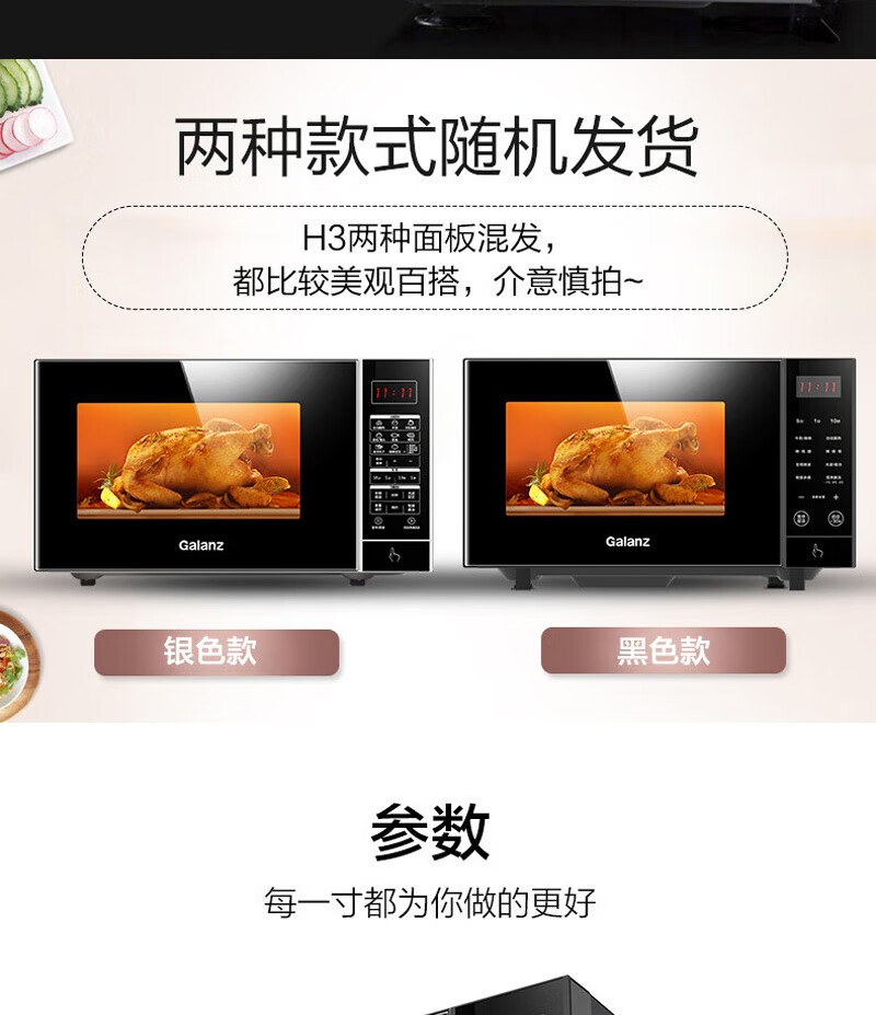 格兰仕(Galanz)变频微波炉烤箱一体机 家用光波炉 一级能效节能 23L大容量智能触控平板速热易清洁 G80F23CN3PV-H3(S0) 黑色