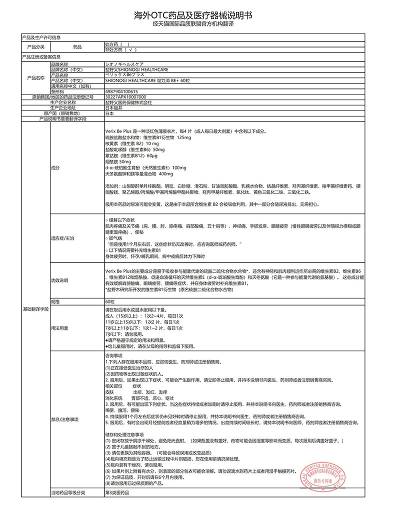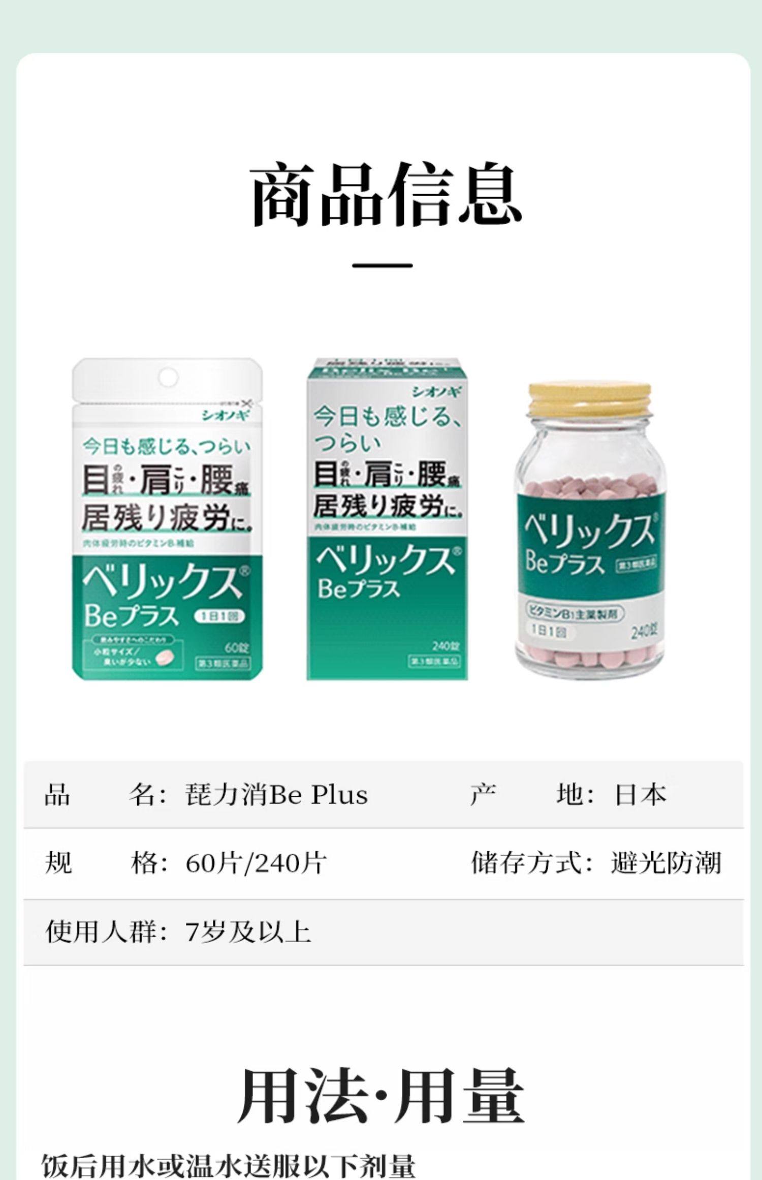 日本盐野义进口琵力消BE复合维生素烟酰胺视力模糊眼肩腰疼痛疲劳