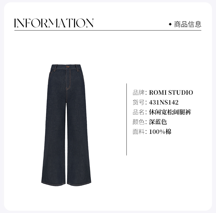 ROMI STUDIO“原味丹宁”*牛仔棉高腰宽松阔腿牛仔裤 431NS142