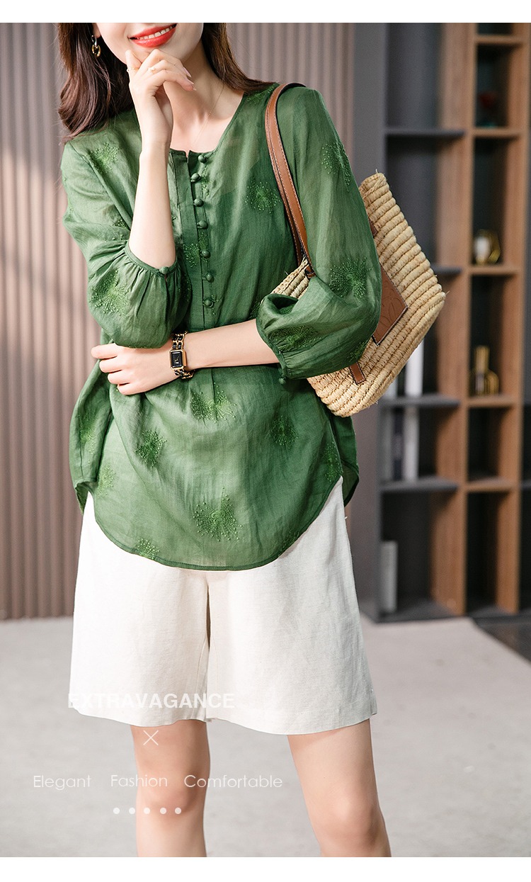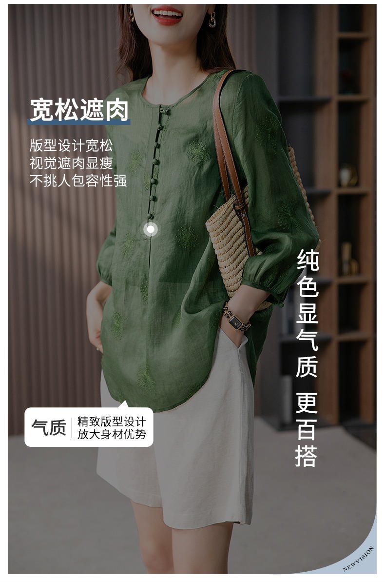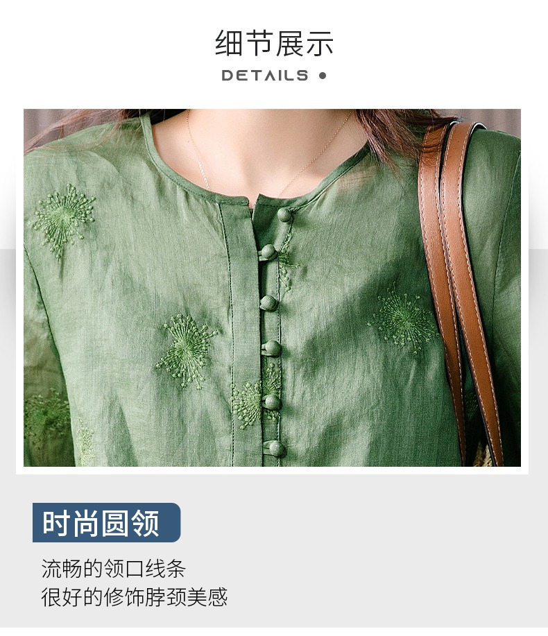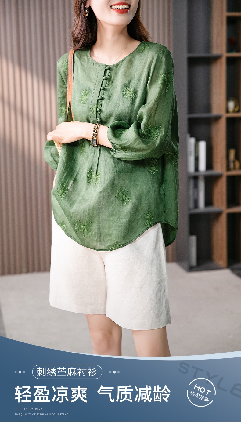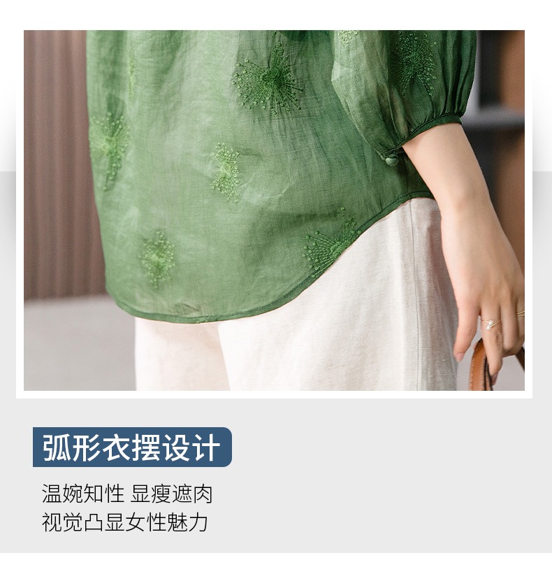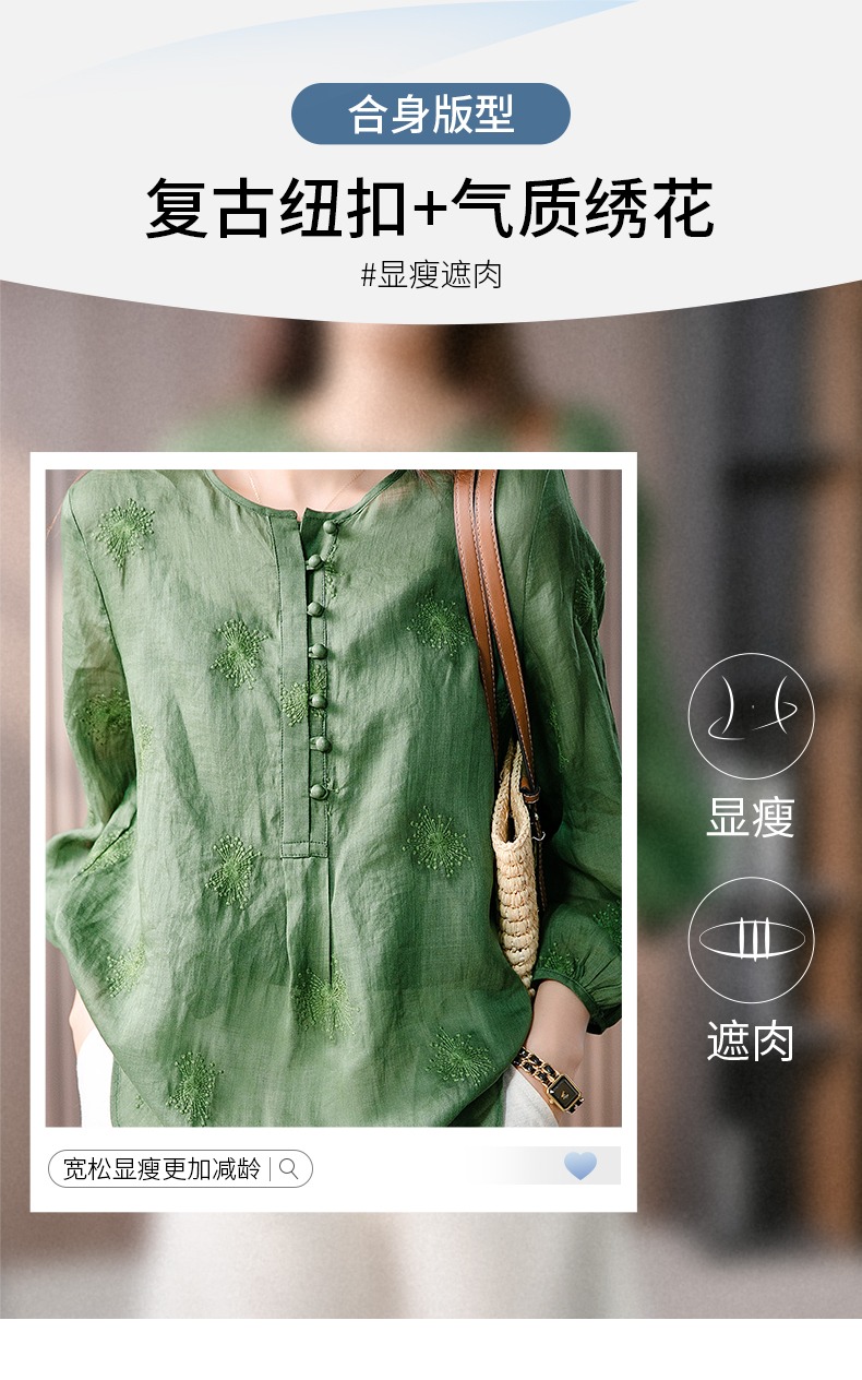 【现货7天】重工刺绣苎麻衬衫女2023夏季新款韩版设计感宽松休闲衬衣上衣
