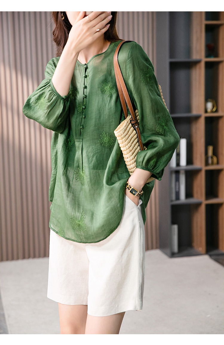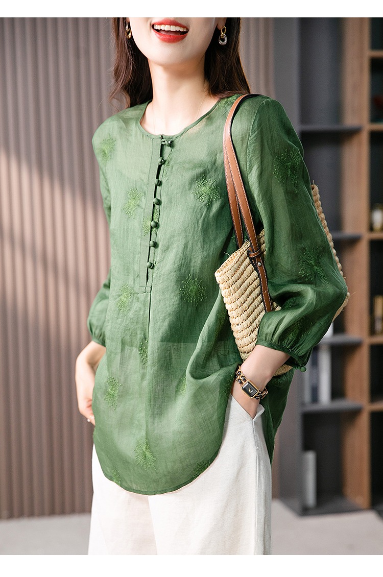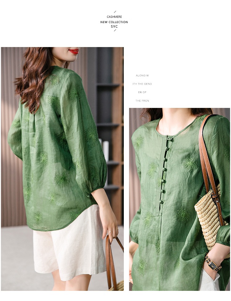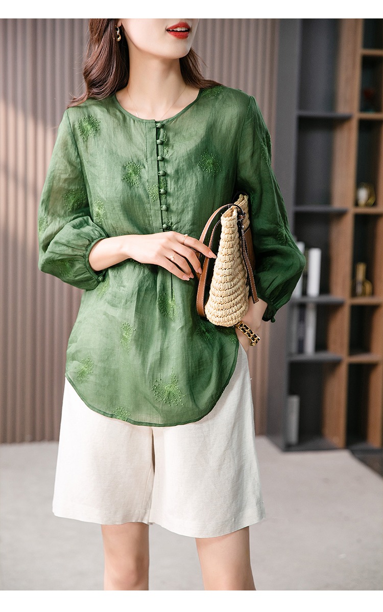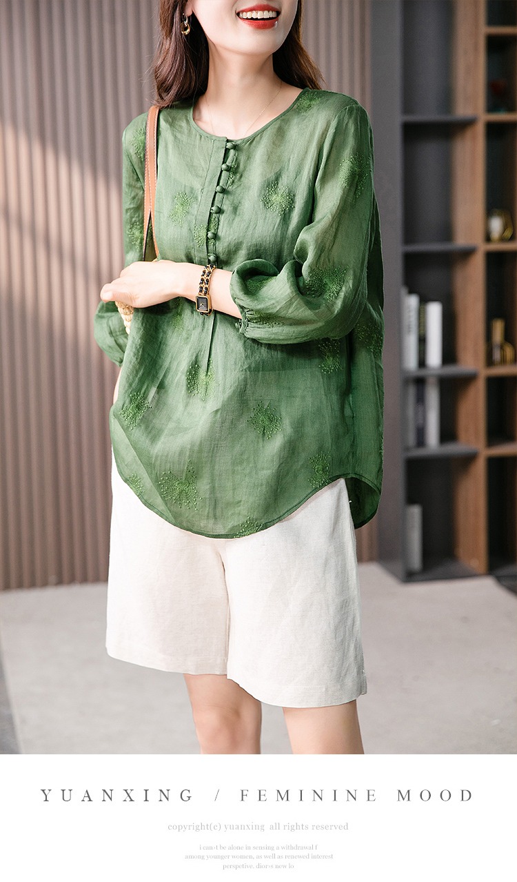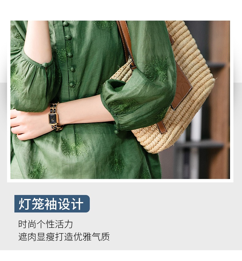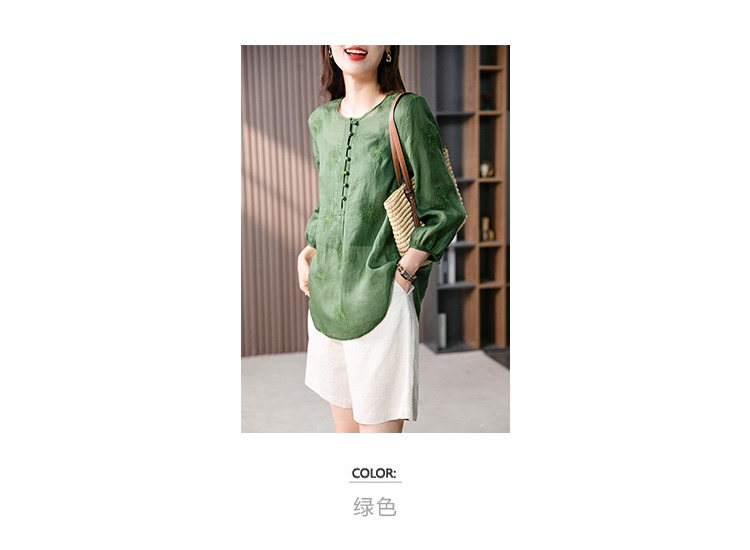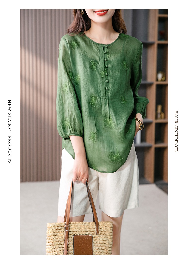 【现货7天】重工刺绣苎麻衬衫女2023夏季新款韩版设计感宽松休闲衬衣上衣