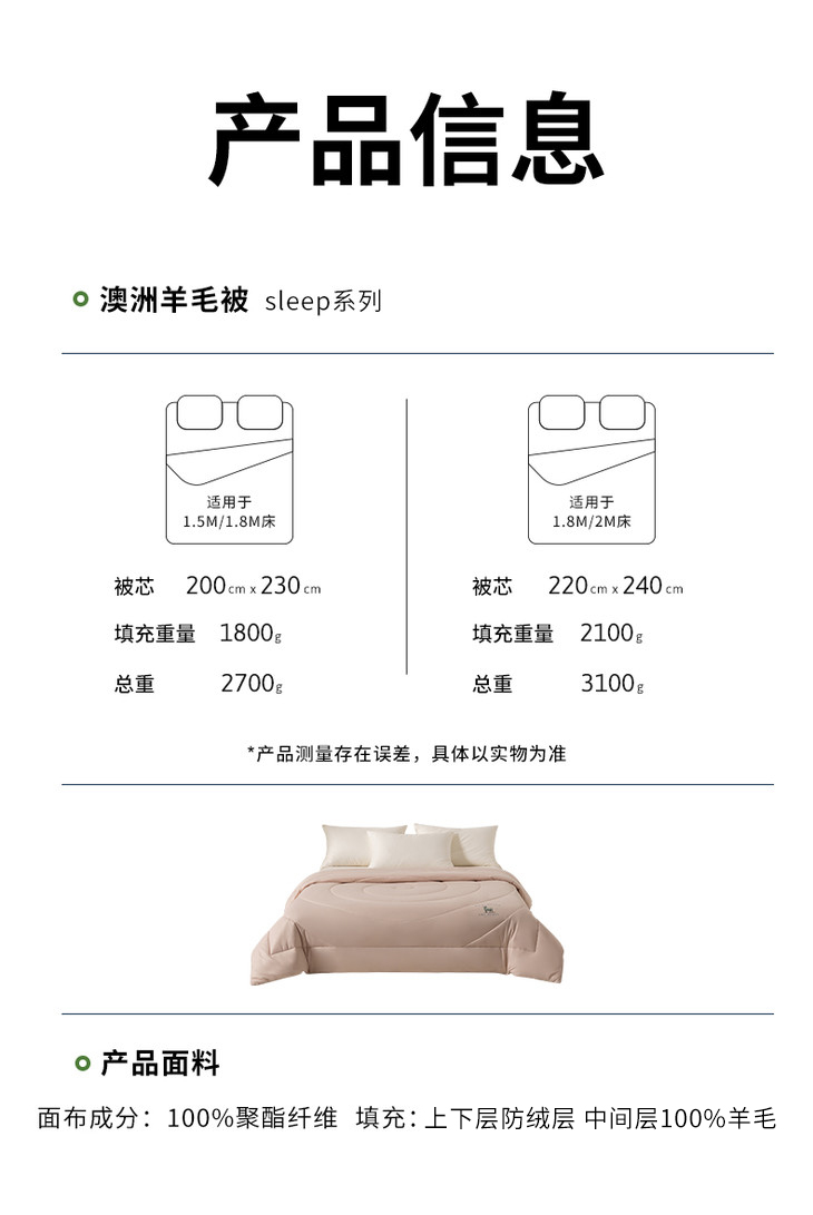一默澳洲羊毛秋冬被 | 保暖锁温 轻盈透气 A类母婴级 干爽不闷热 温暖舒睡一整晚