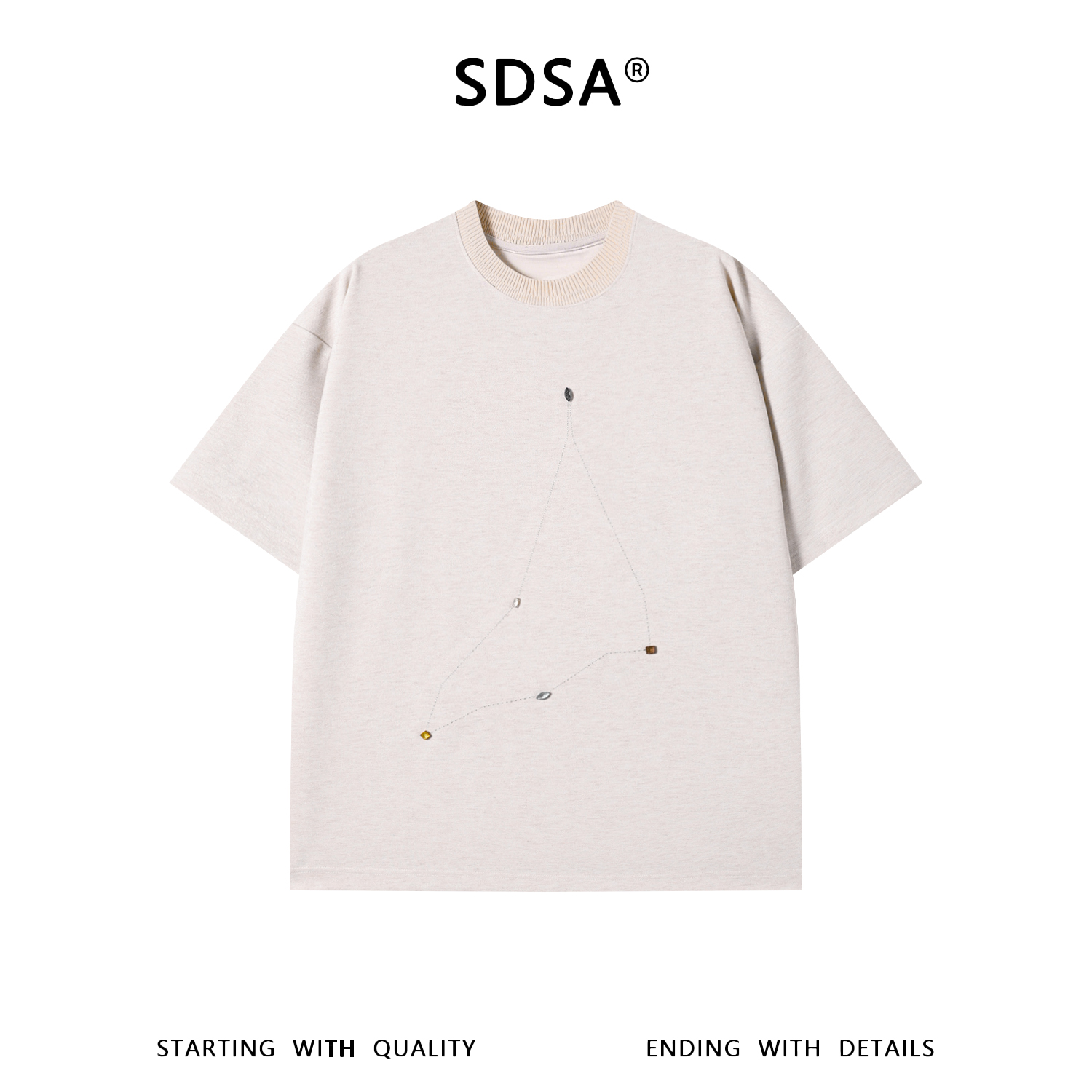 SDSA男装2026新款高贵轻奢座线迹彩石装饰宽松短袖T恤百搭时尚