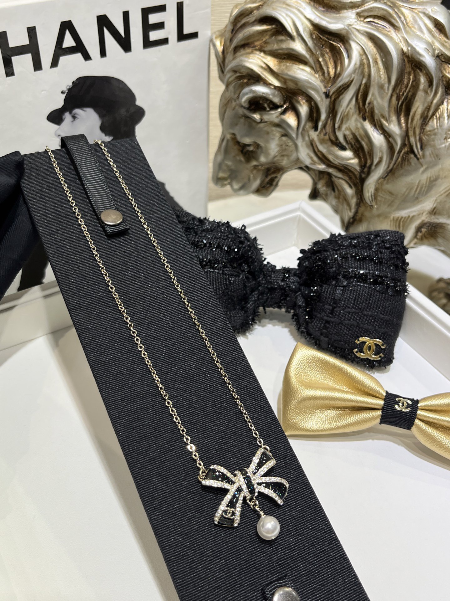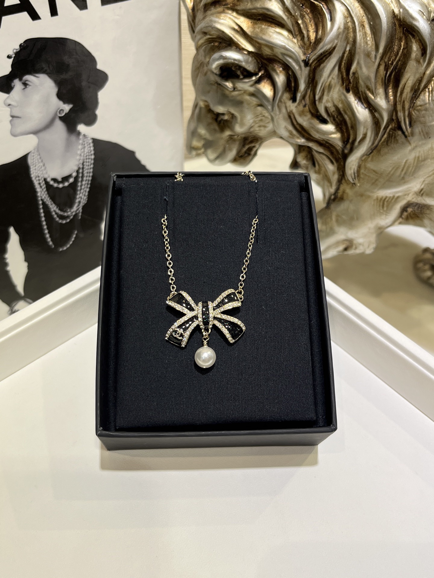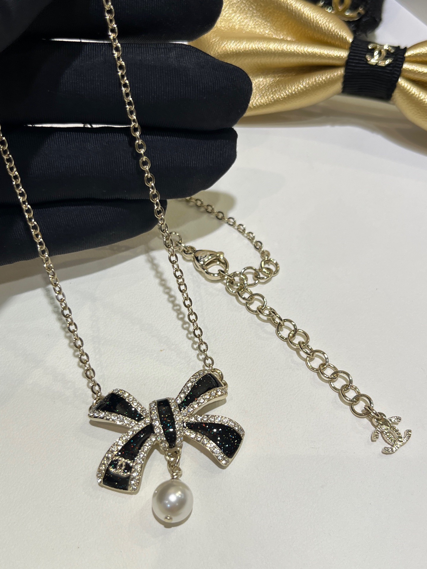 TB125-香奈儿满钻双C黑色珐琅蝴蝶结吊坠项链(XK)-10.14直播款