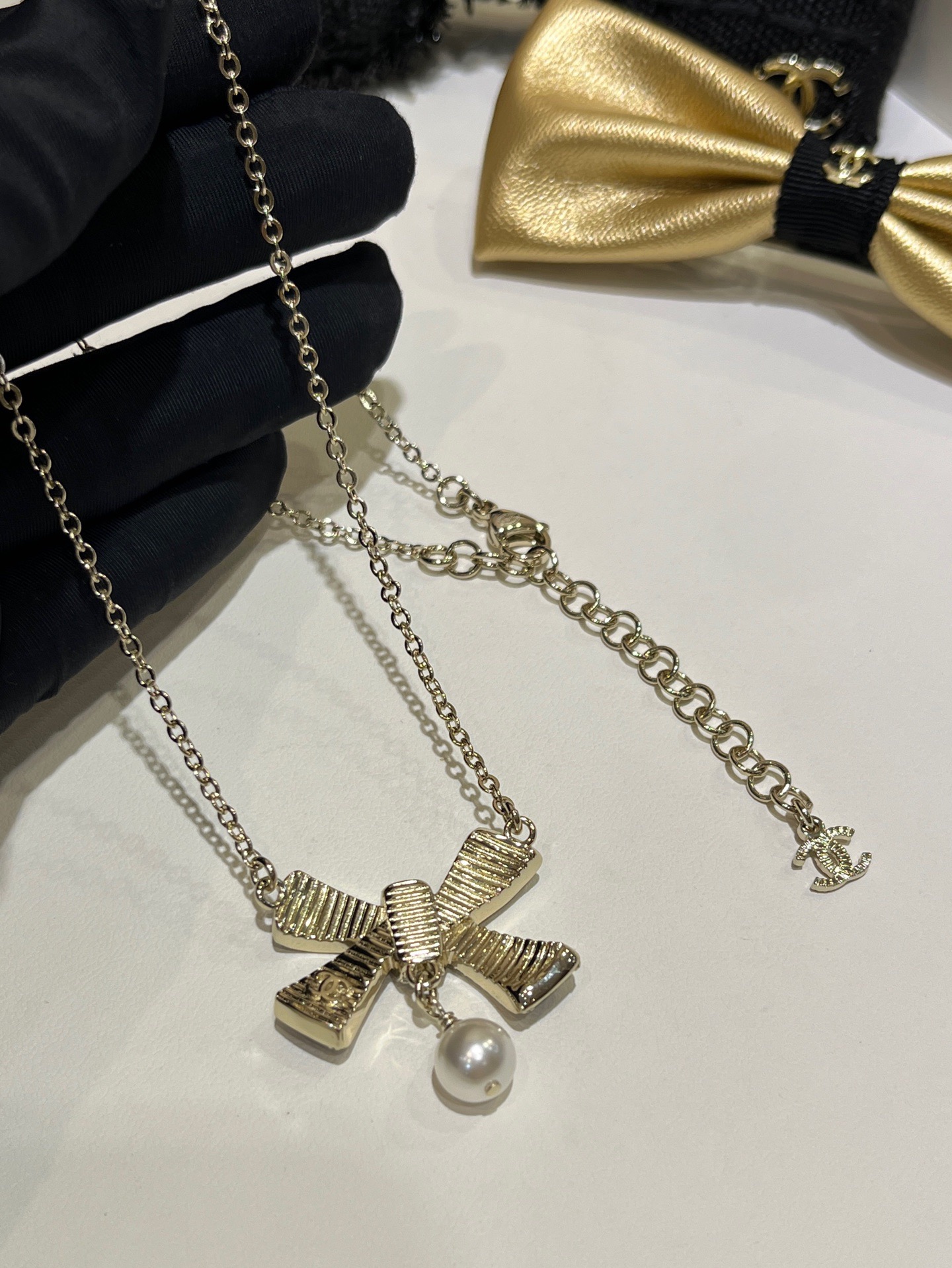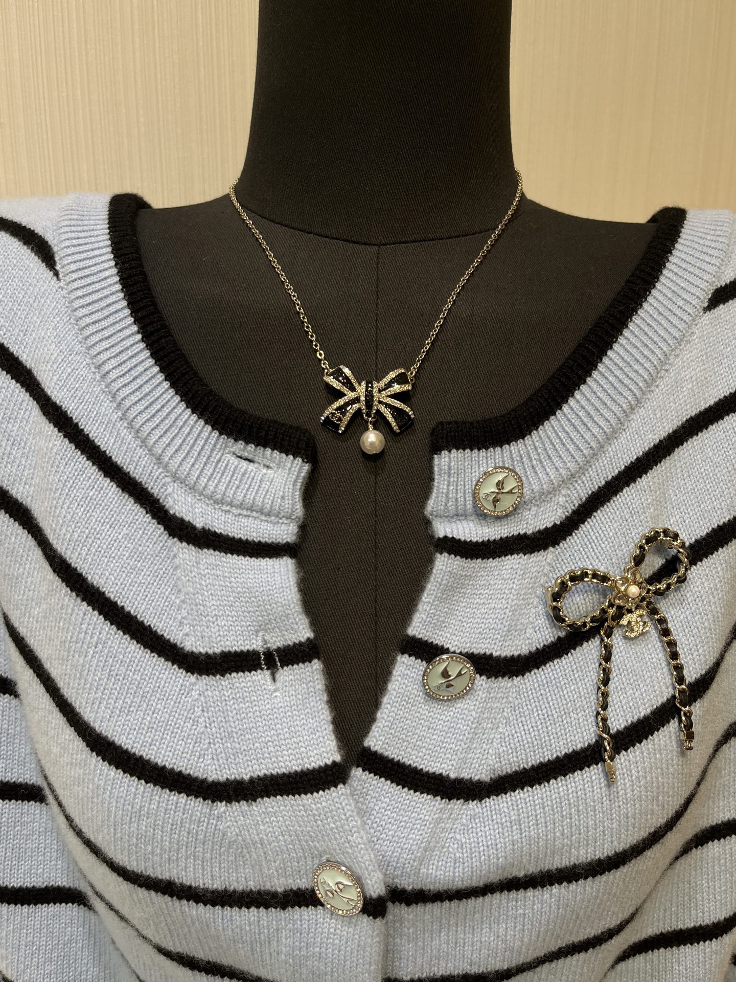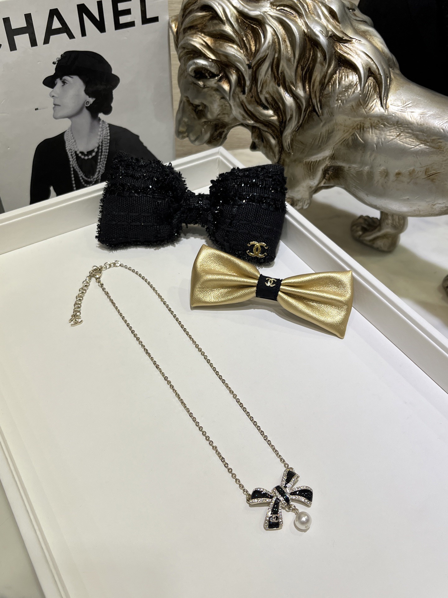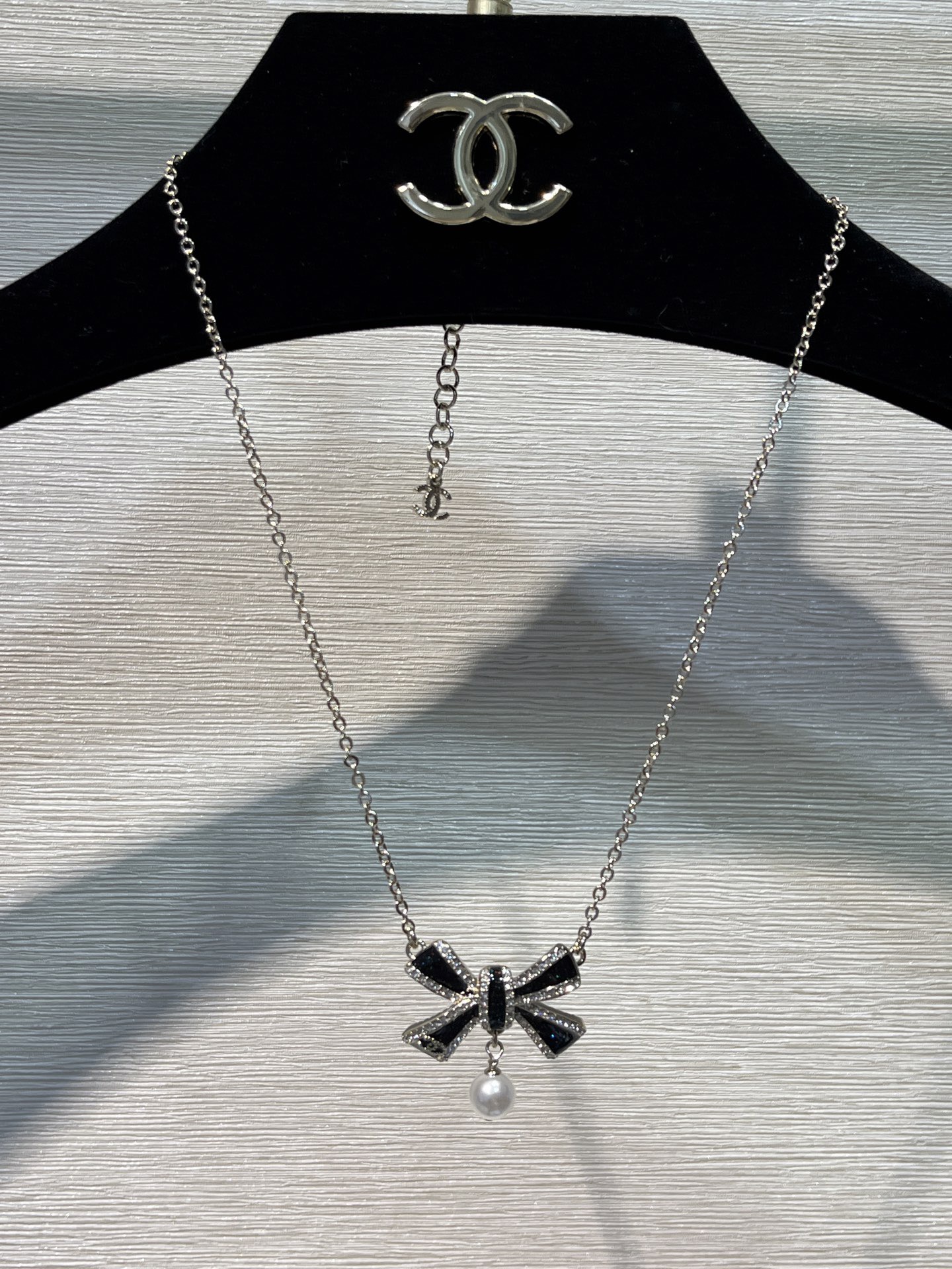 TB125-香奈儿满钻双C黑色珐琅蝴蝶结吊坠项链(XK)-10.14直播款