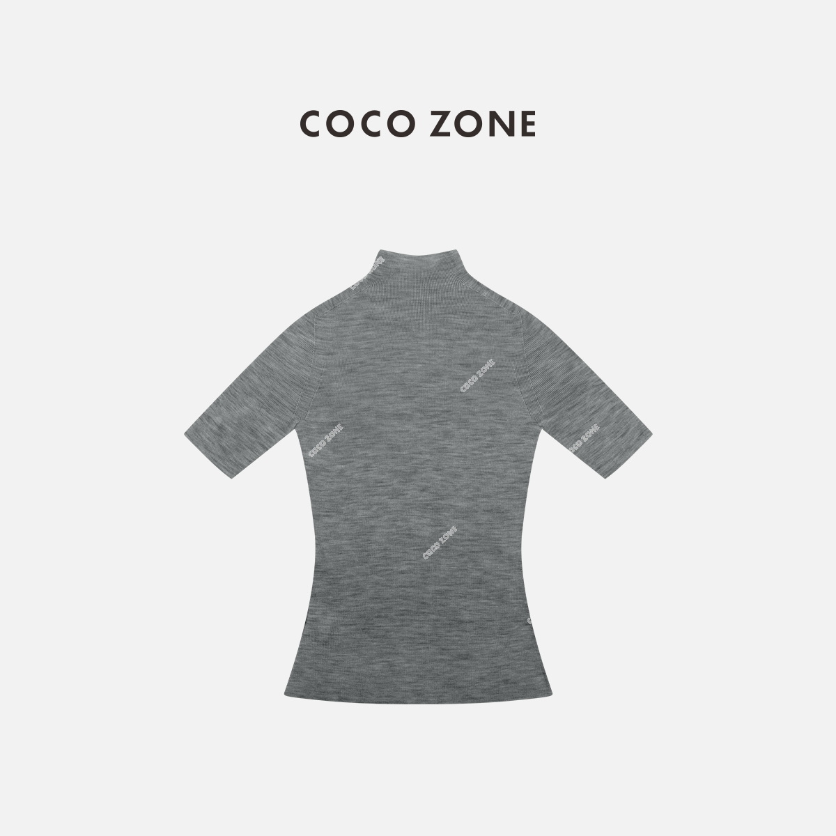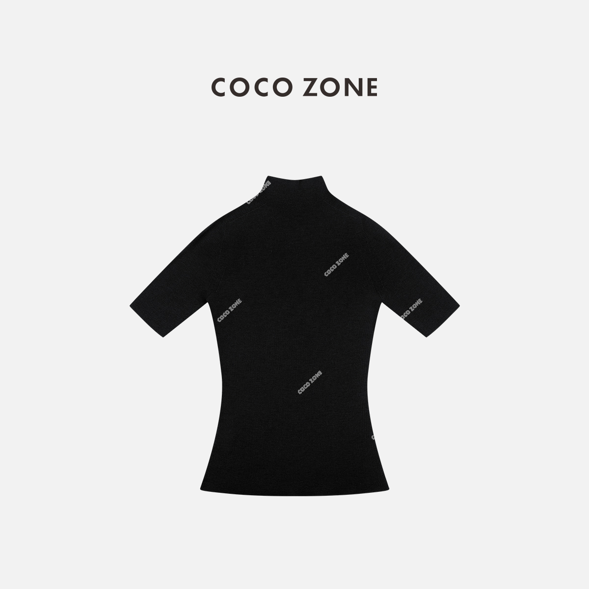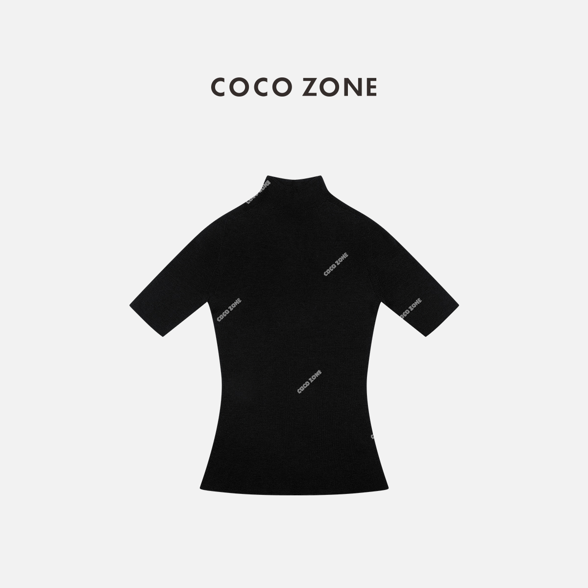 COCO ZONE 秋季设计感短袖立领针织衫百搭上衣CC2C2261