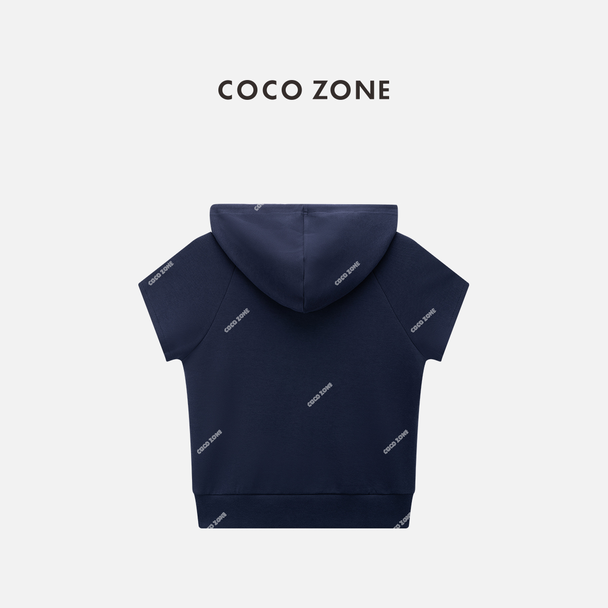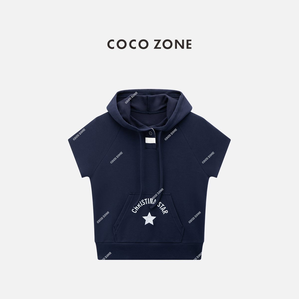 COCO ZONE "星星帽衫"夏季字母绣花短袖T恤抽绳连帽上衣CC2B1151