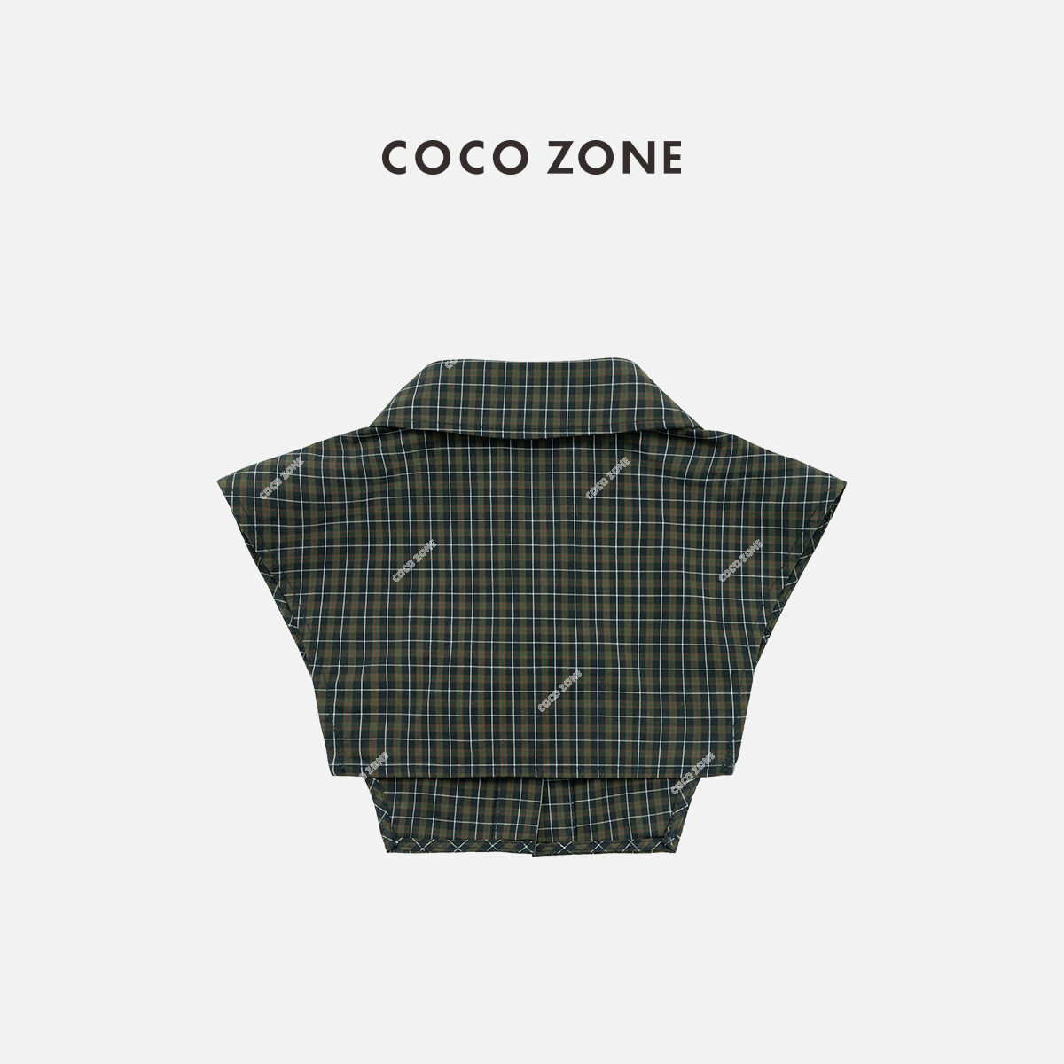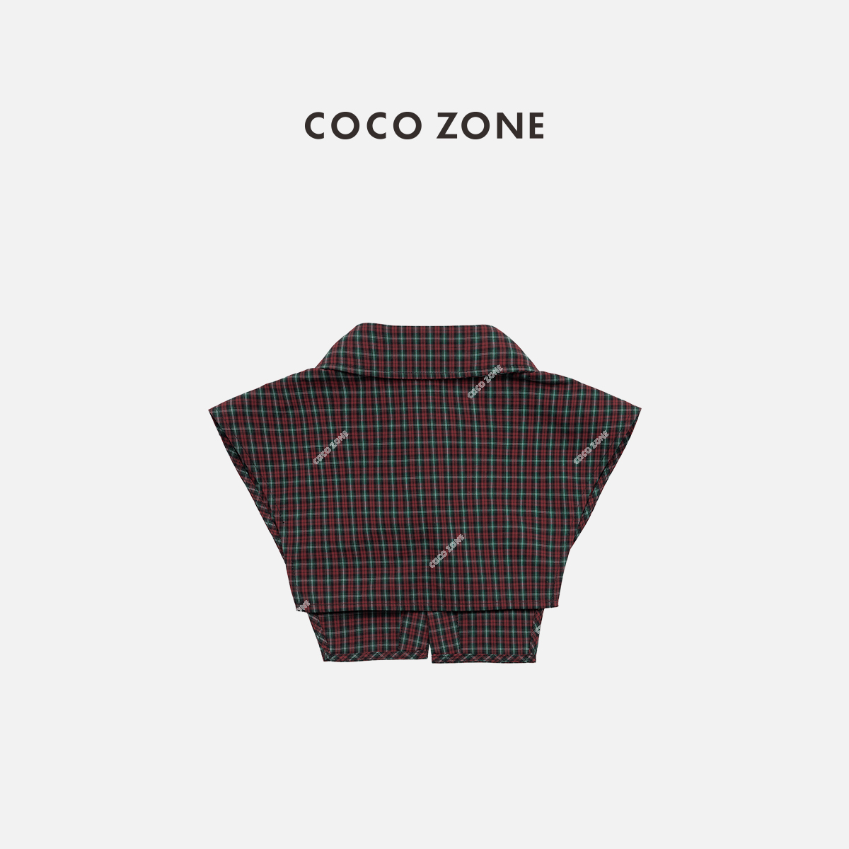 COCO ZONE 复古设计感格纹POLO领披肩CC1C2324