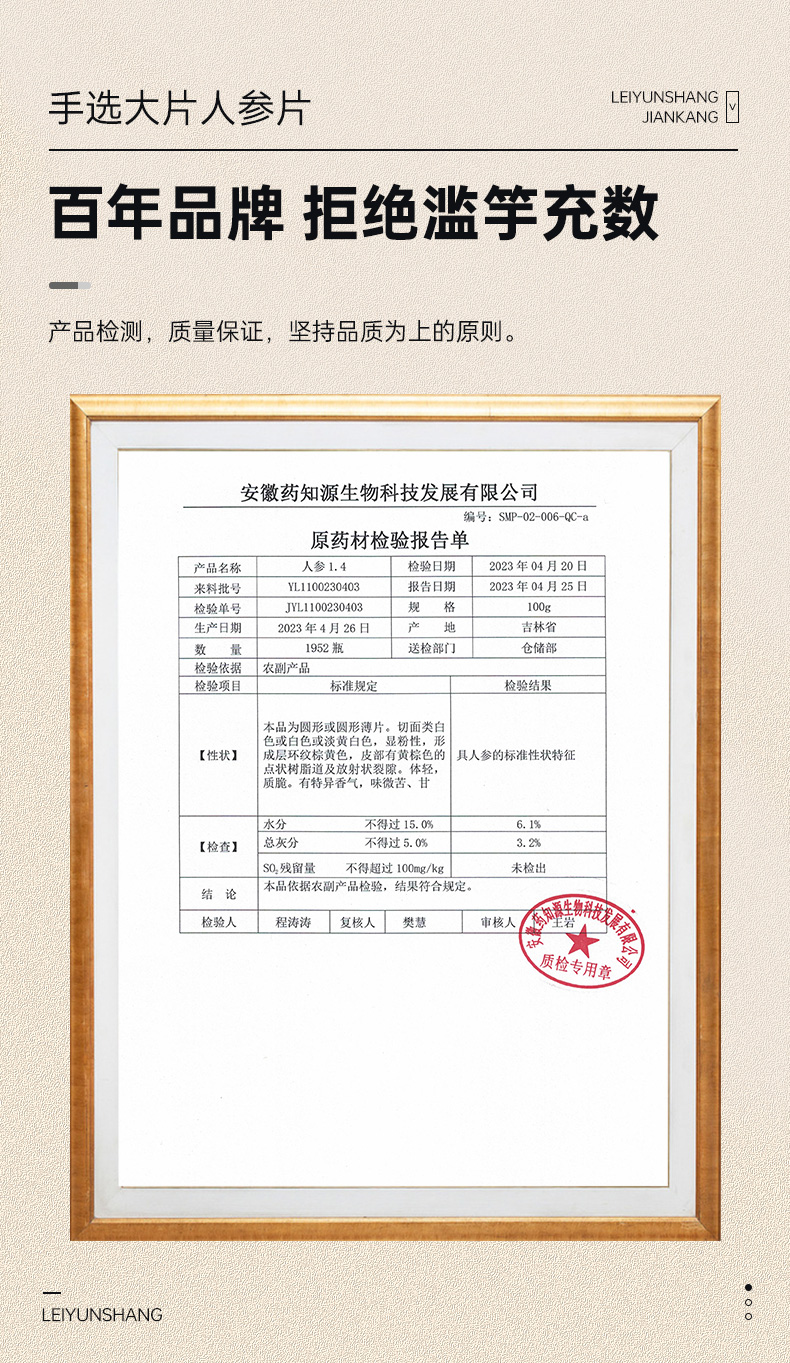 雷允上长白山人参片100g/罐(直径1.4-1.8cm)