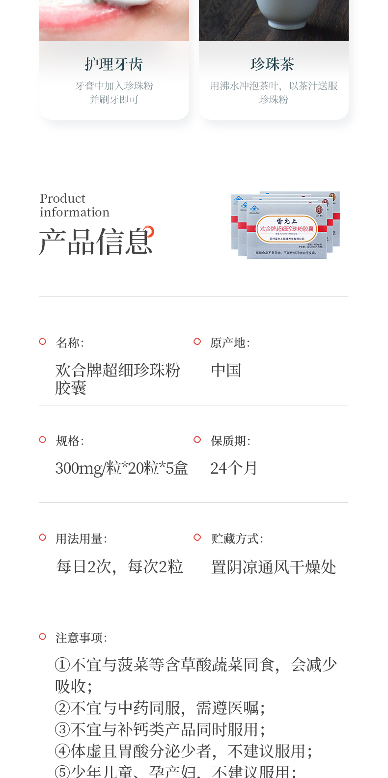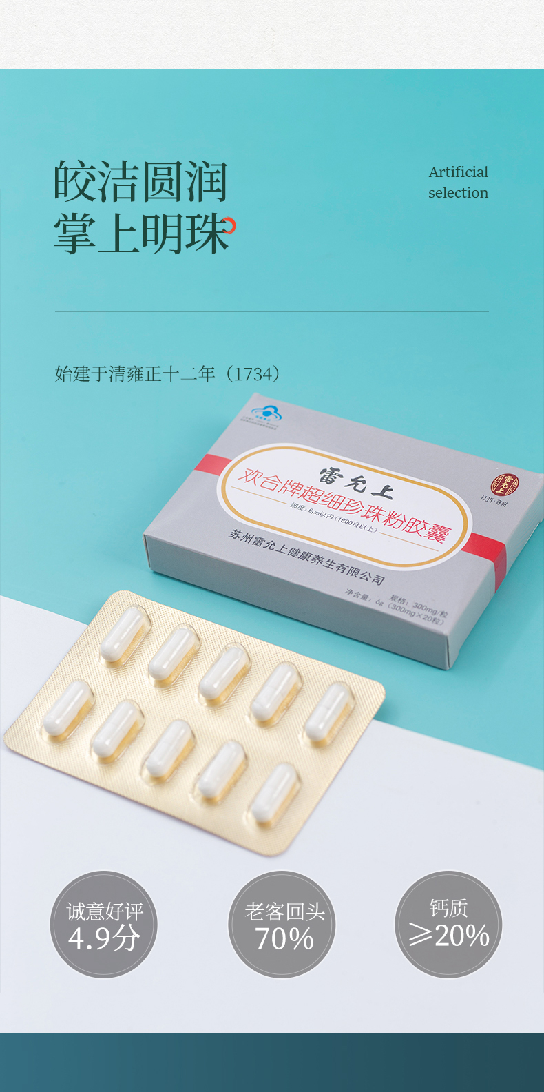 雷允上欢合牌超细珍珠粉胶囊6g(300mg*20粒)/盒