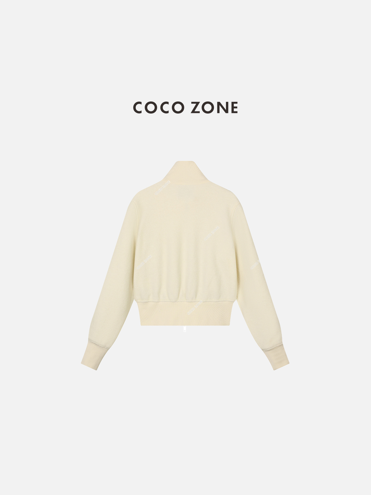 COCO ZONE100%羊毛立领双拉链外套条纹长袖 运动23C19337