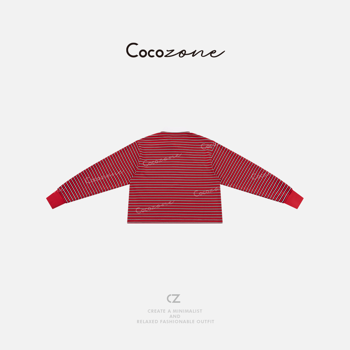 COCO ZONE 刘一一“法网红条”100棉条纹运动风长袖T恤CD1A1073