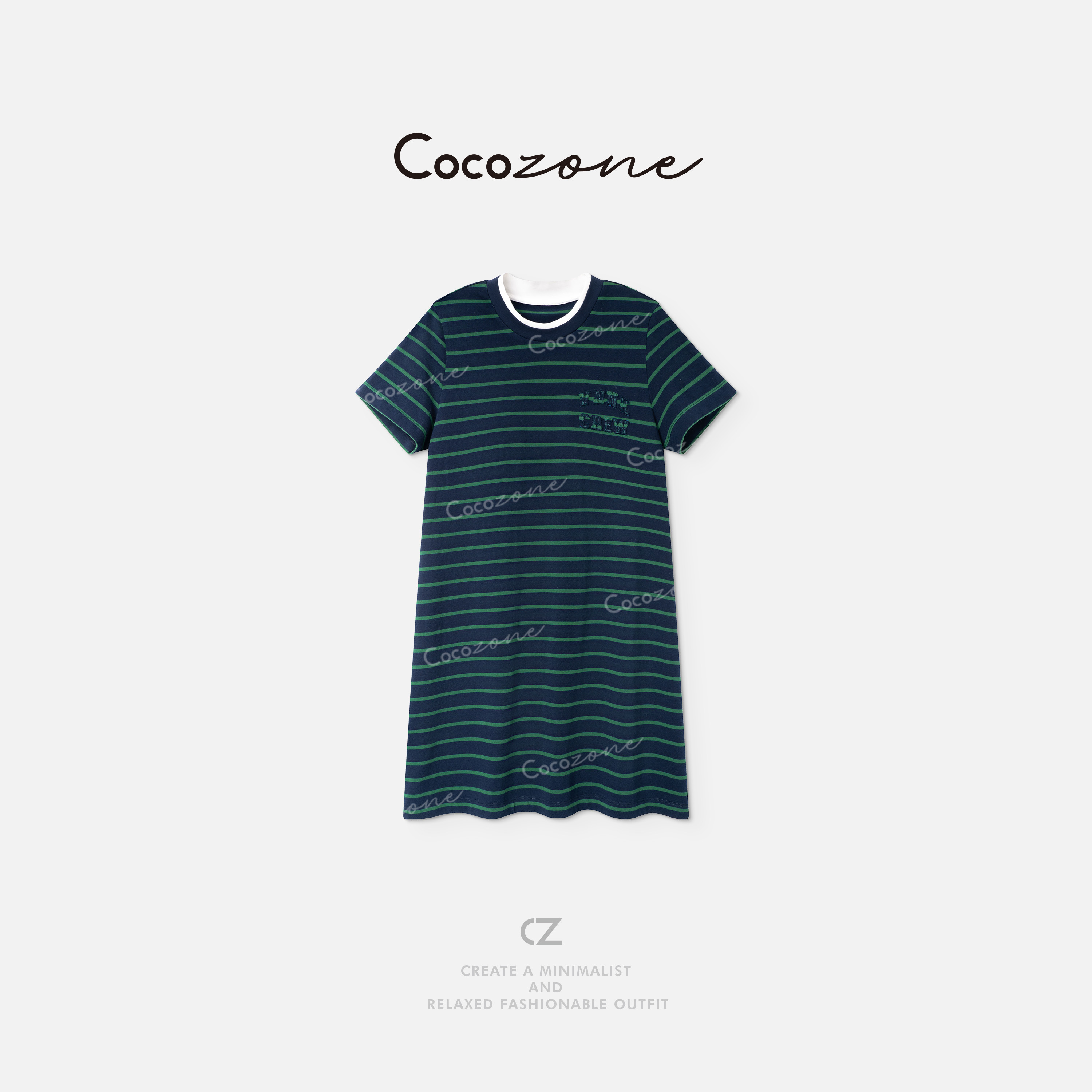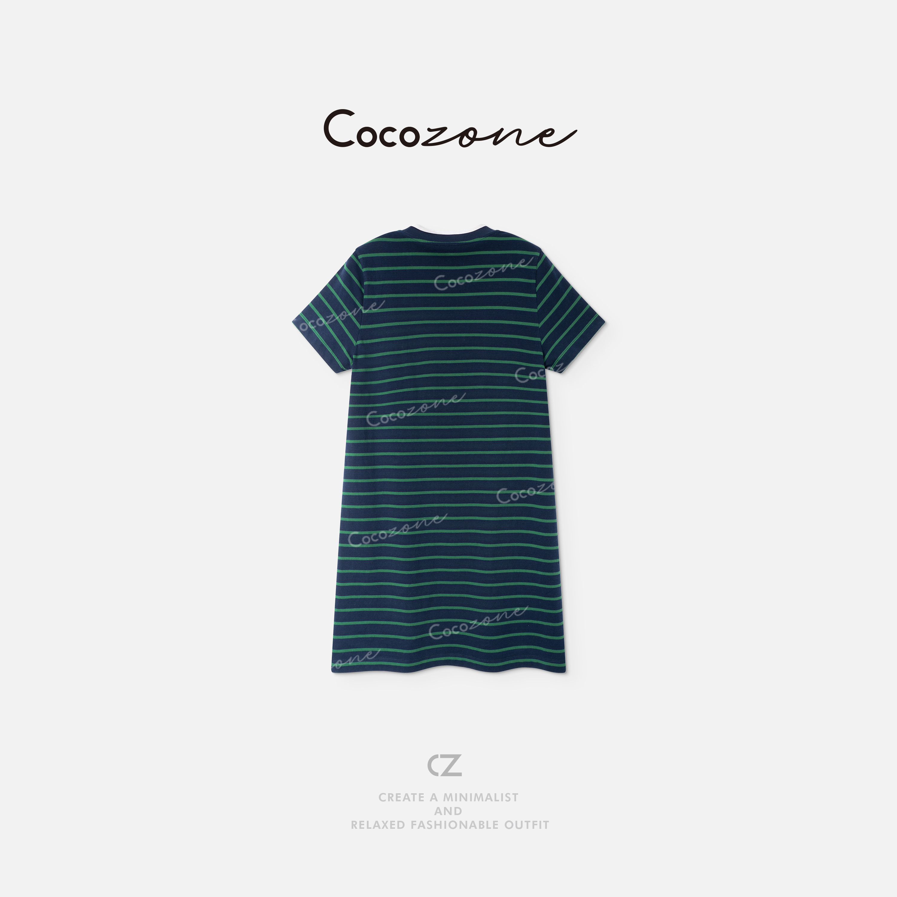 COCO ZONE 刘一一“网球少女”100棉条纹元素连衣裙 CD2A1605