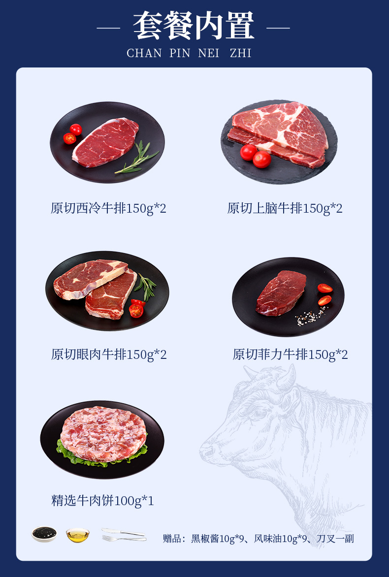 鲜飨澳洲精选谷饲原切牛排礼盒598型1300g(注:冷冻生鲜类商品不退,质量问题只换)