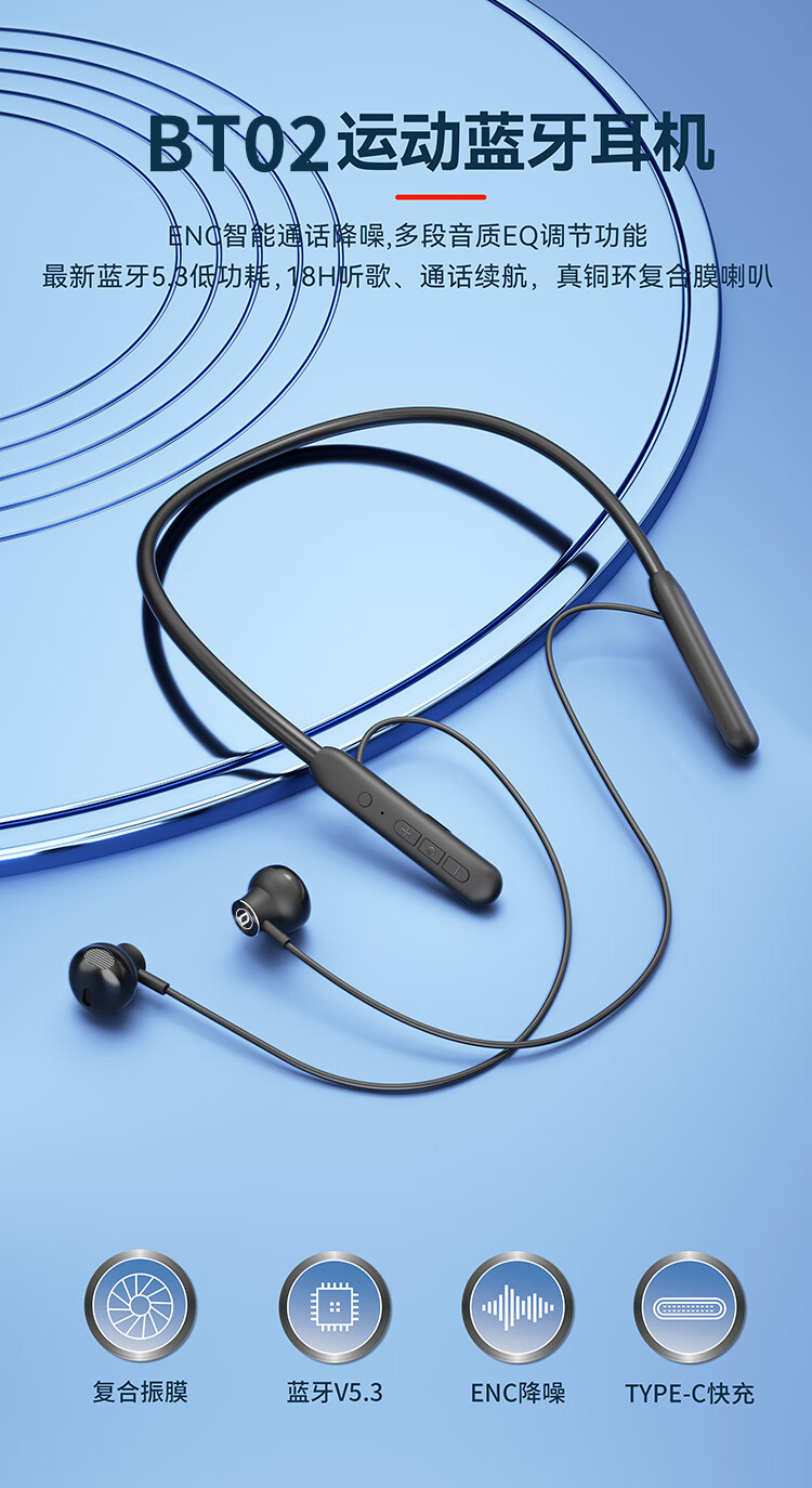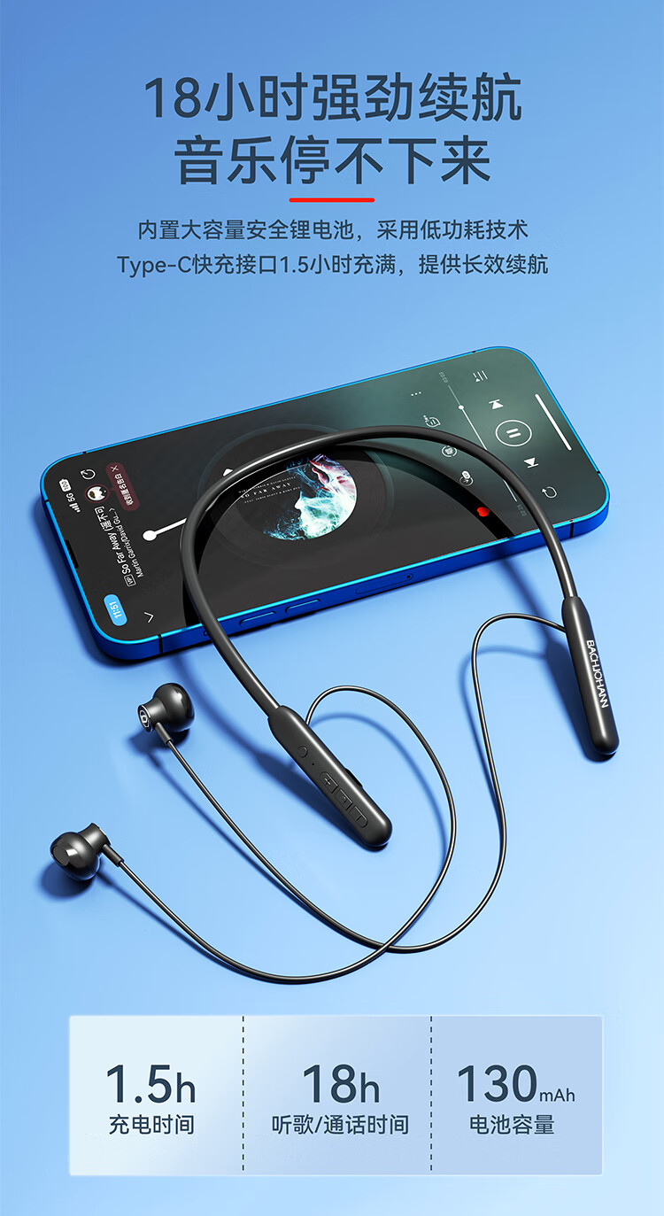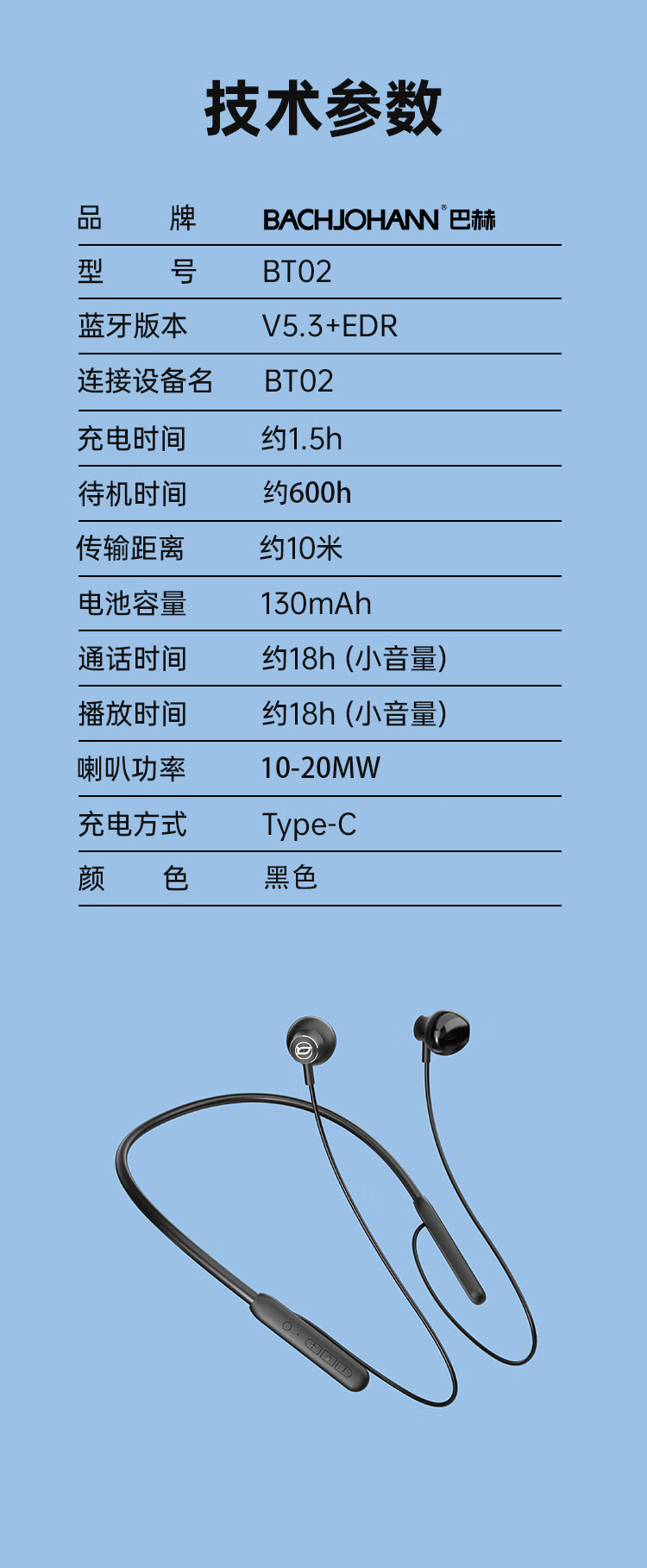德国巴赫 挂脖耳机BT02新款 黑色