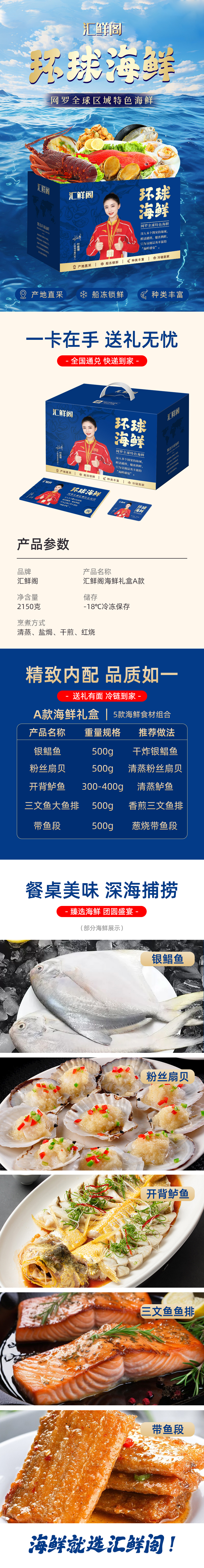 汇鲜阁海鲜礼盒A款2150g(注:冷链生鲜类商品不退,质量问题只换)