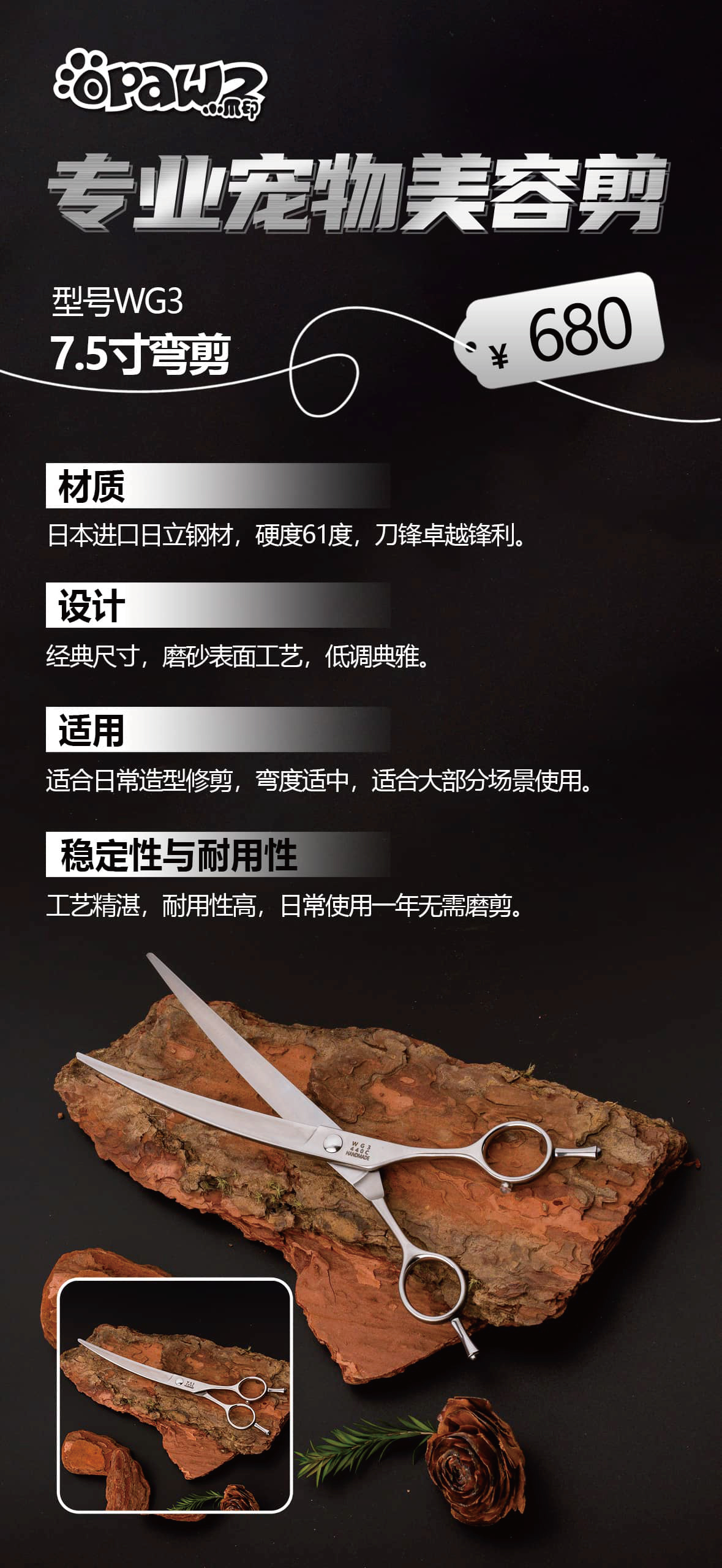 宠物剪刀-7.5吋弯剪-WG3 OPAWZ(小爪印)