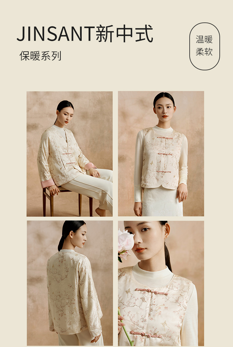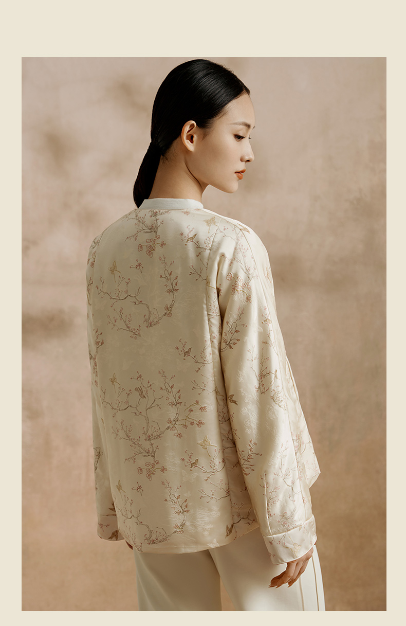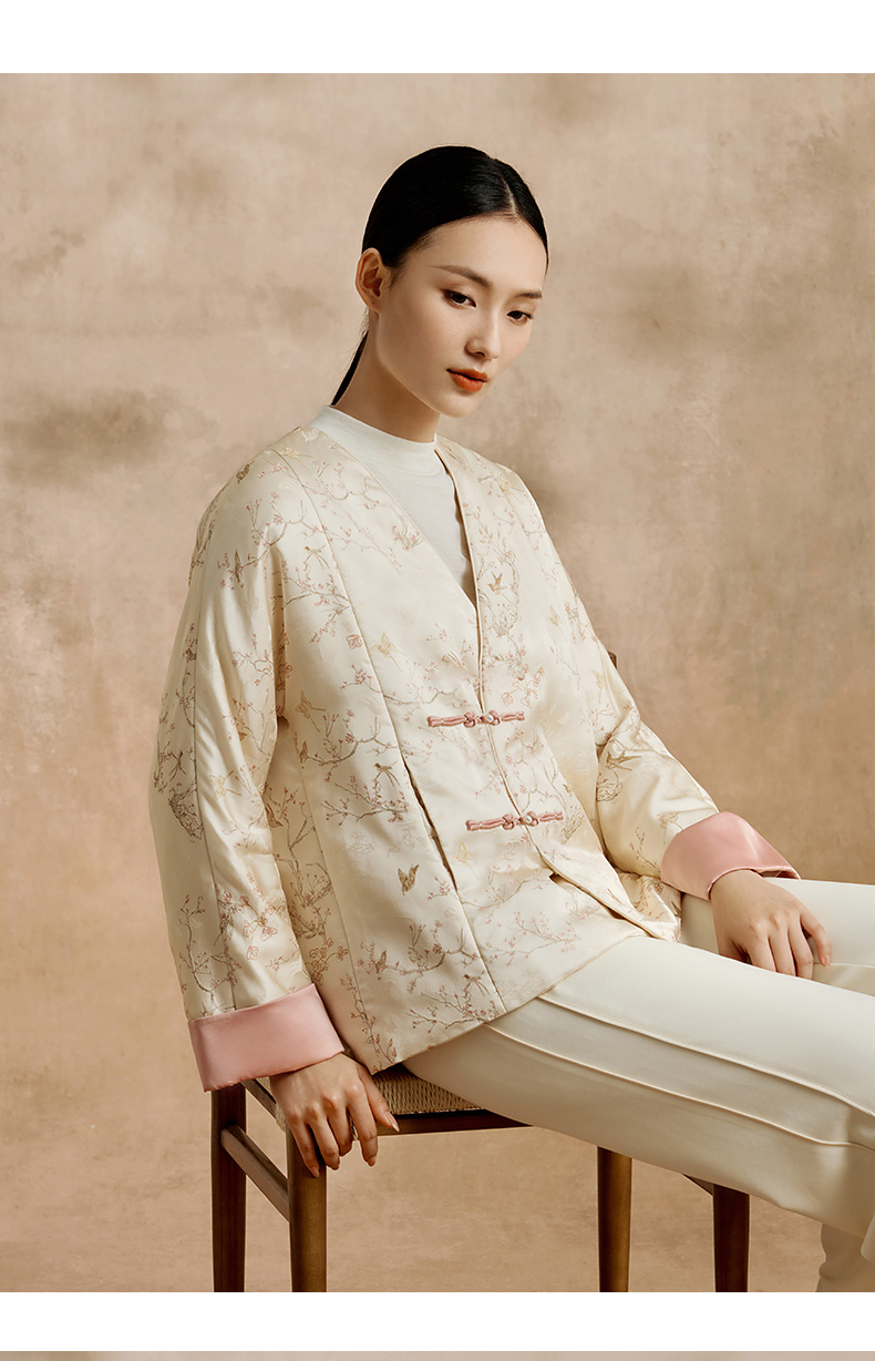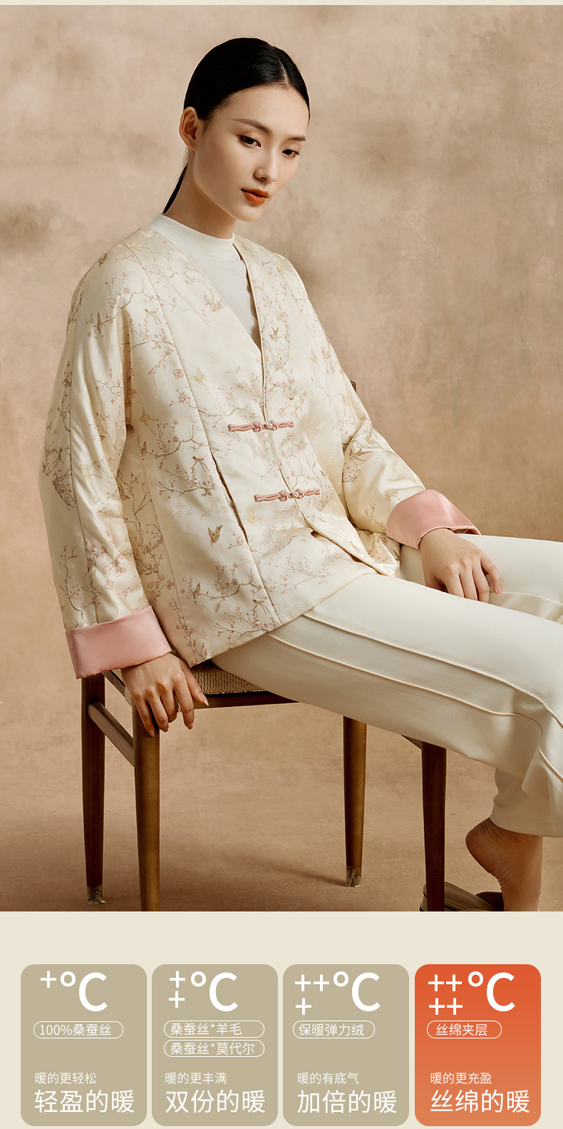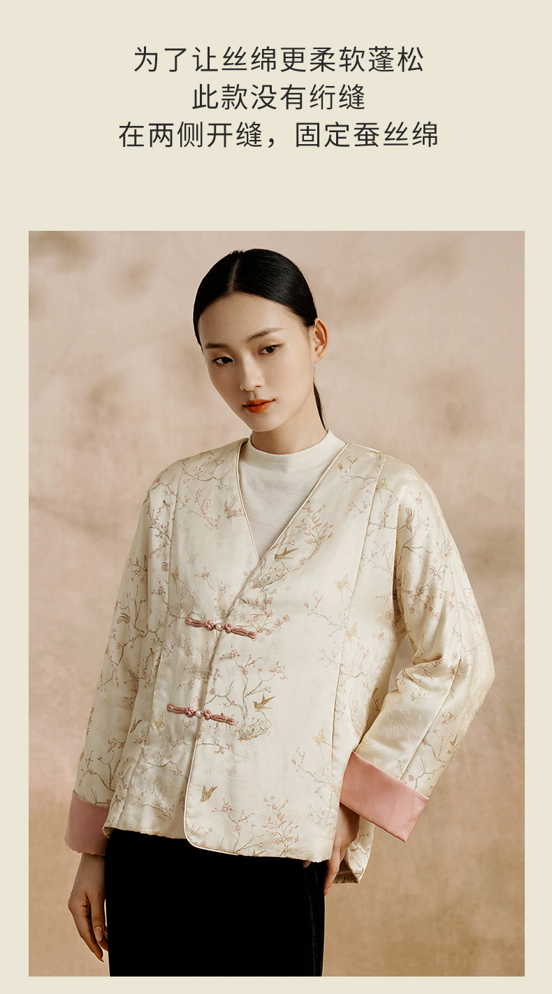 金三塔桑蚕丝填充保暖长袖棉袄女新中式印花宽松可外穿棉衣外套(限价) NSFED731