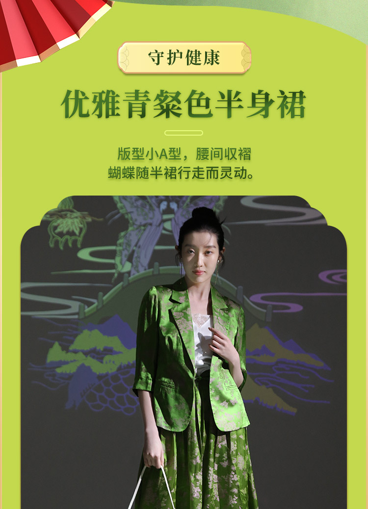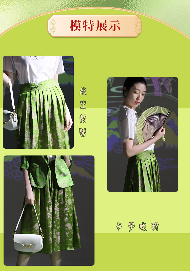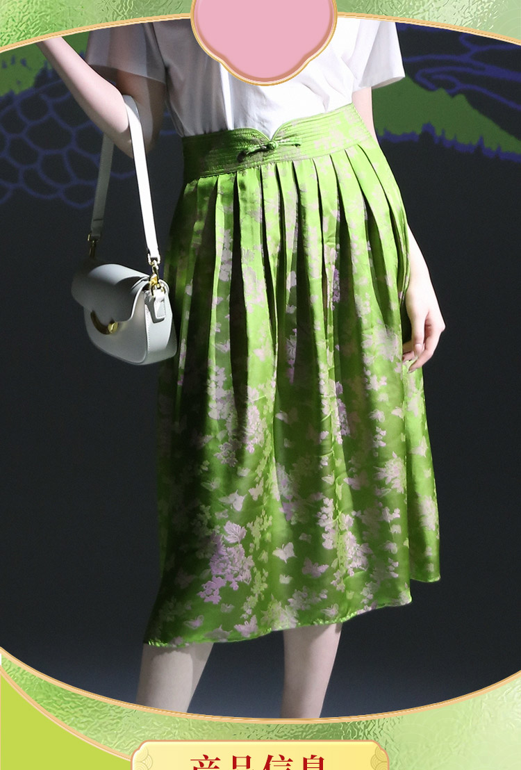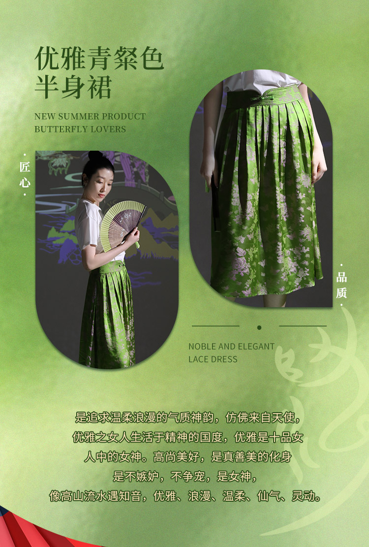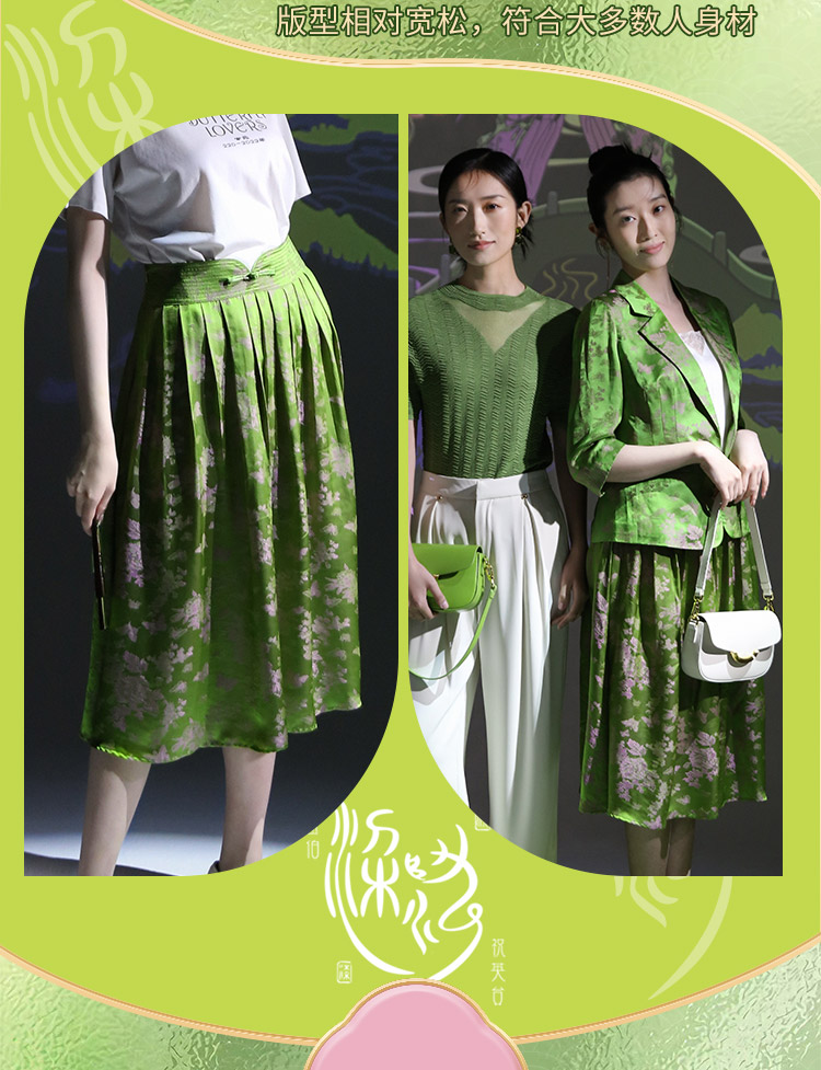 千年情话—梁祝草桥结拜青璨色牡丹提花纹半裙 2B40010