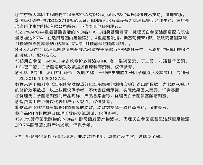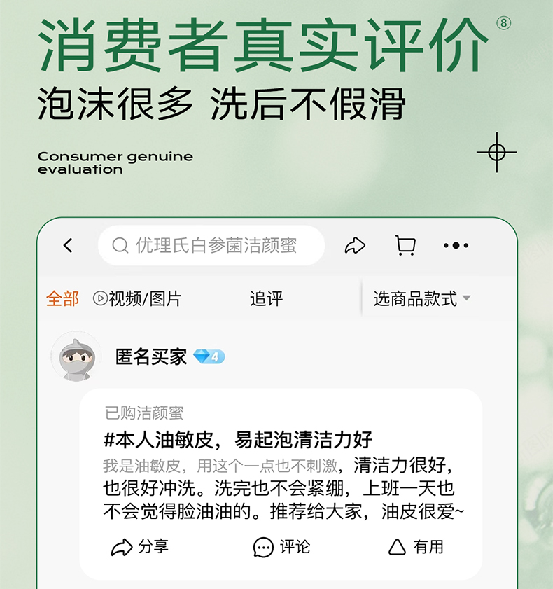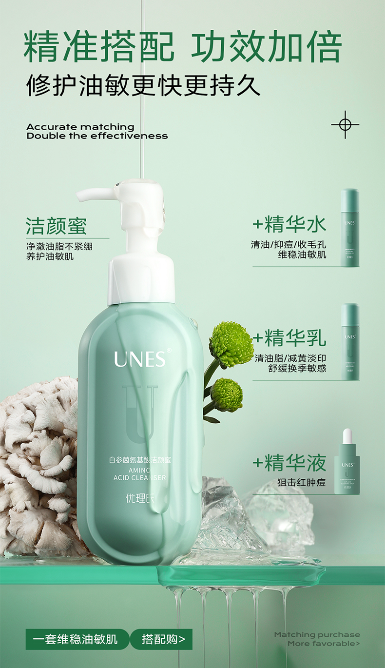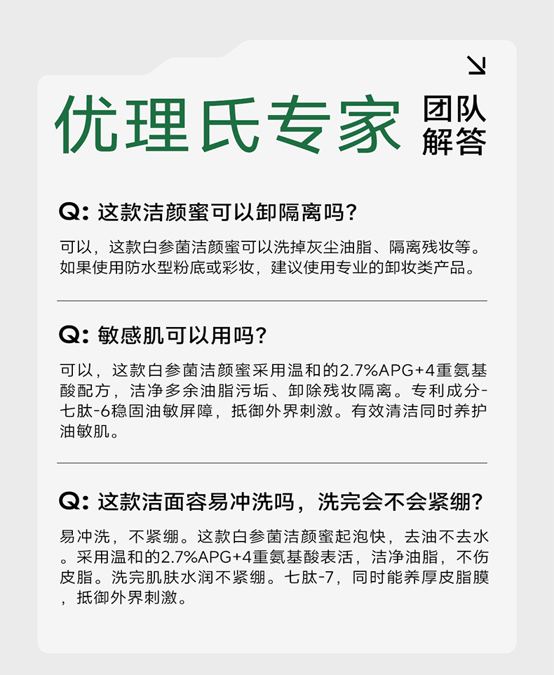 【控油祛痘】优理氏白参菌氨基酸洁颜蜜深层清洁油痘肌控油洗面奶