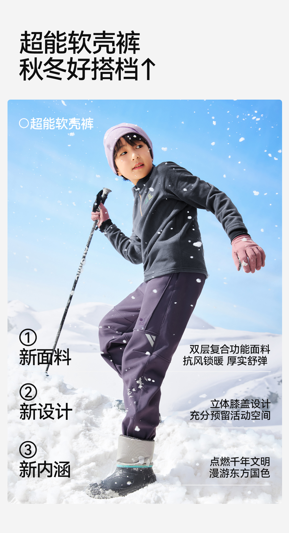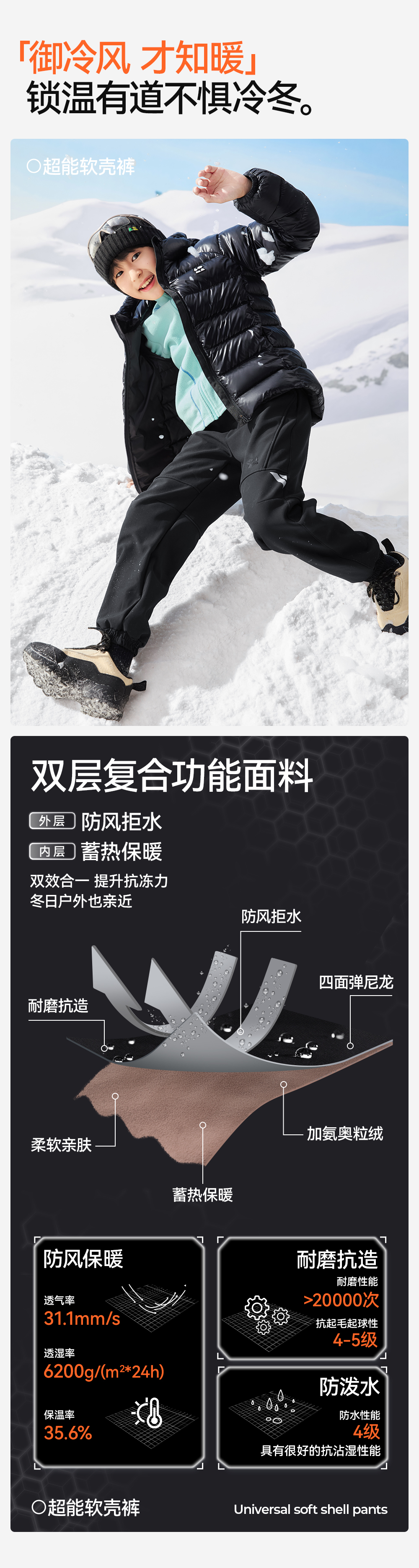 【户外软壳裤】森林棠25冬季新款儿童四面弹户外防风保暖运动裤长裤61032402