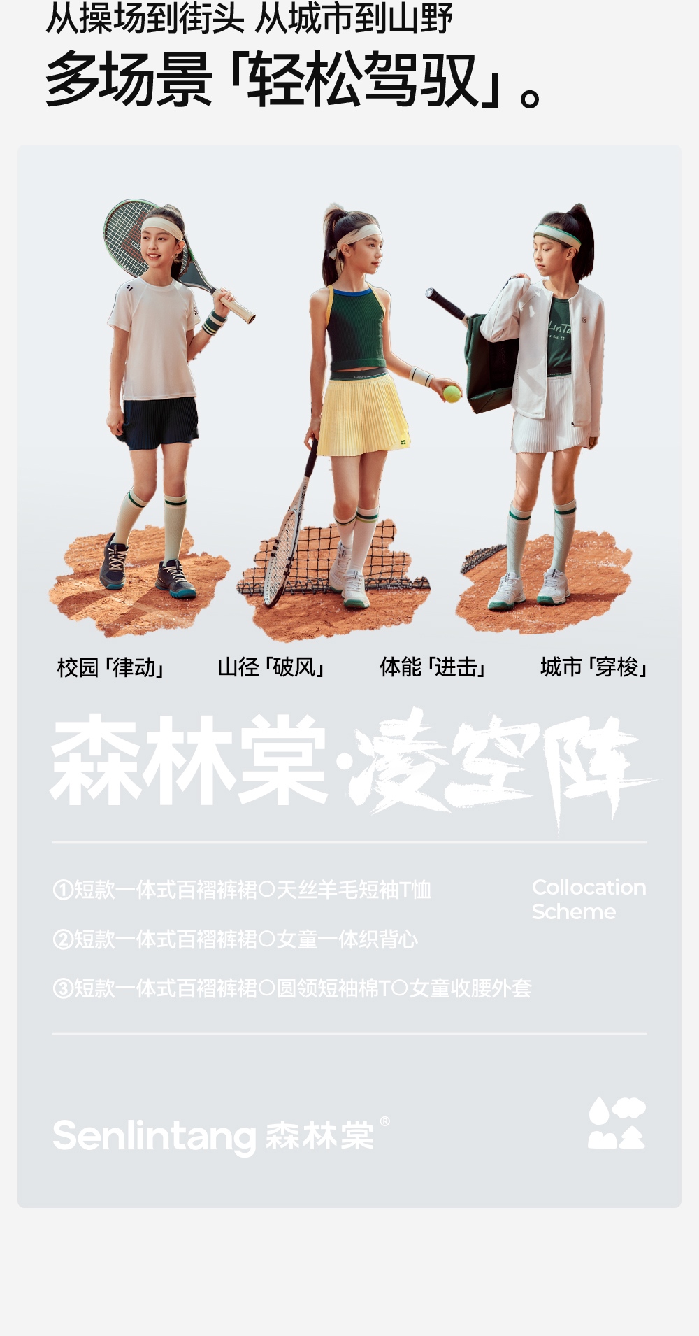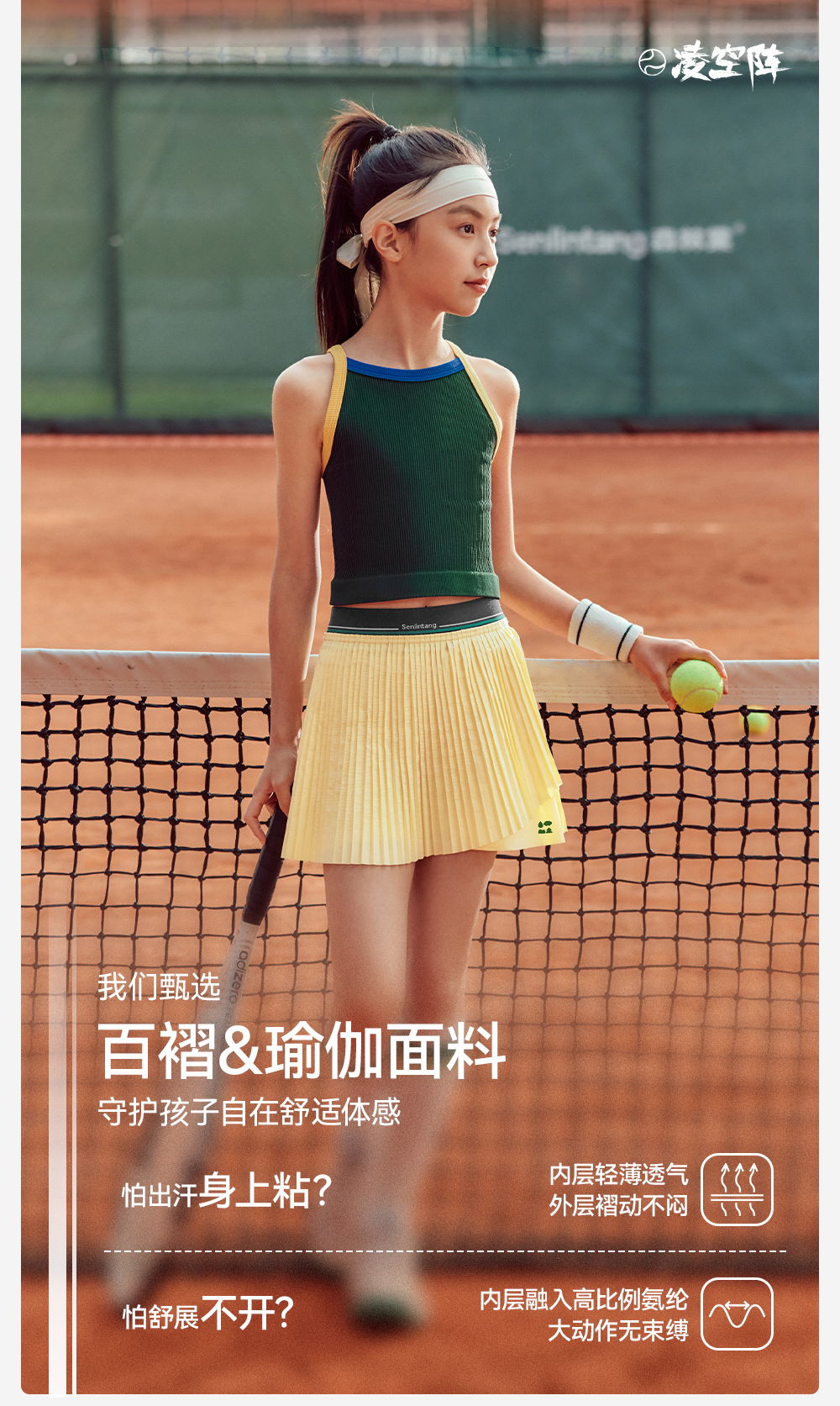 【一体式百褶裤裙】森林棠26夏款轻盈透气女童压褶气质网球运动短裙42962048