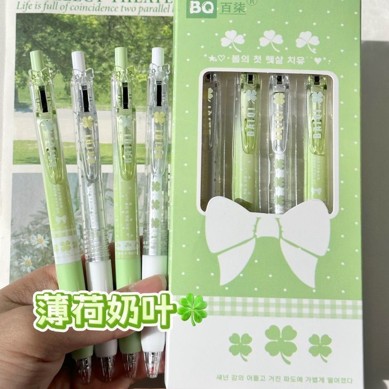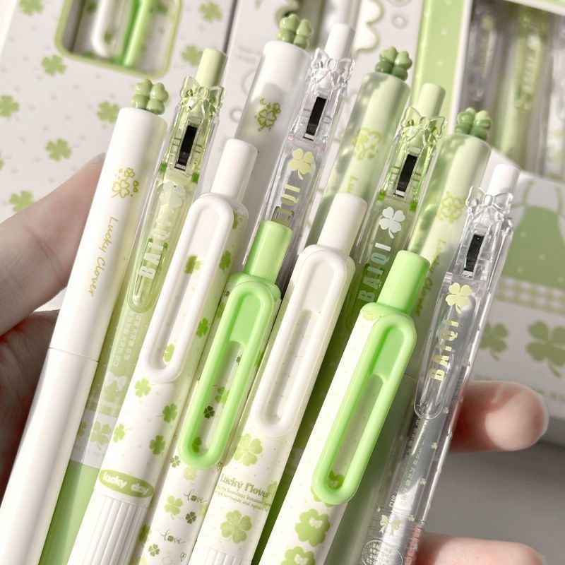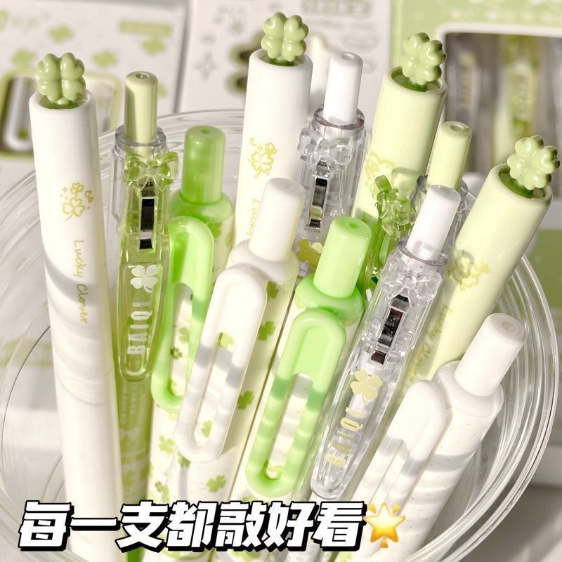 【开学季❗️四叶草按动中性笔】ins风高颜值,学生考试速干刷题笔,字迹清晰,速干成型!开学季学生考试中性笔刷题笔0.5黑笔笔芯顺滑水笔L