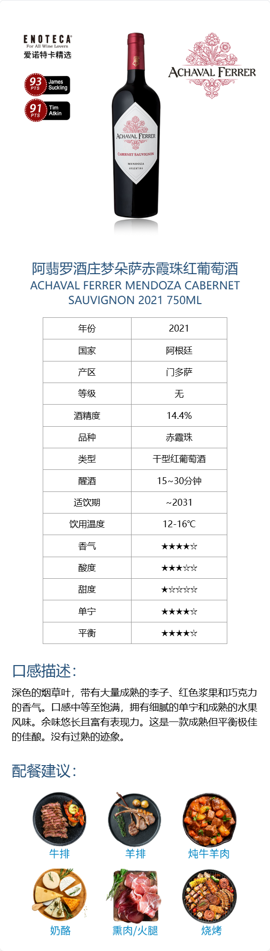阿翡罗酒庄梦朵萨赤霞珠红葡萄酒2021 750ml