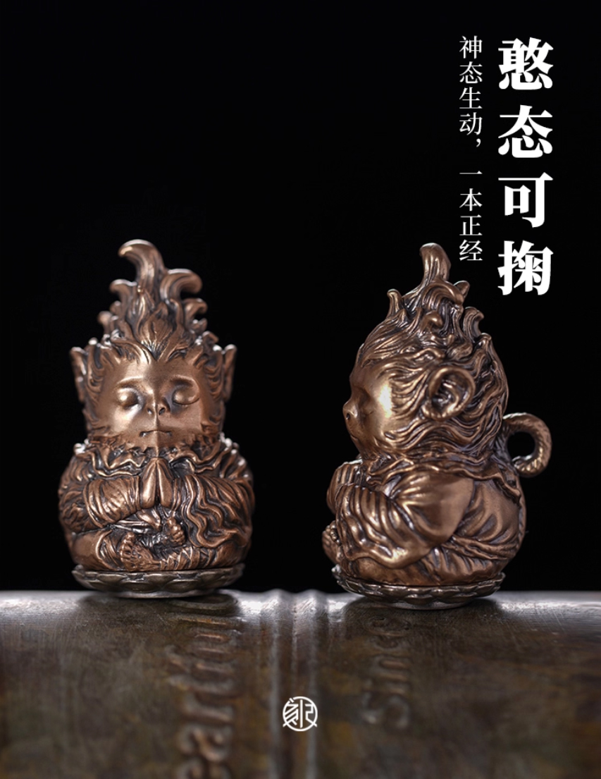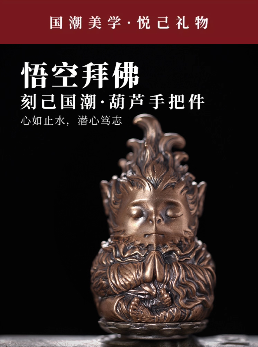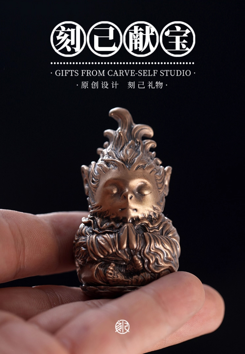 刻己 - 悟空拜佛 创意铜雕像盘玩手把件 青铜 齐天大圣创意桌面摆件节日礼物【官方授权 】【48小时发货】