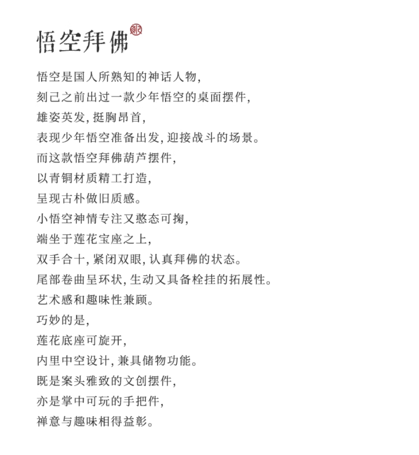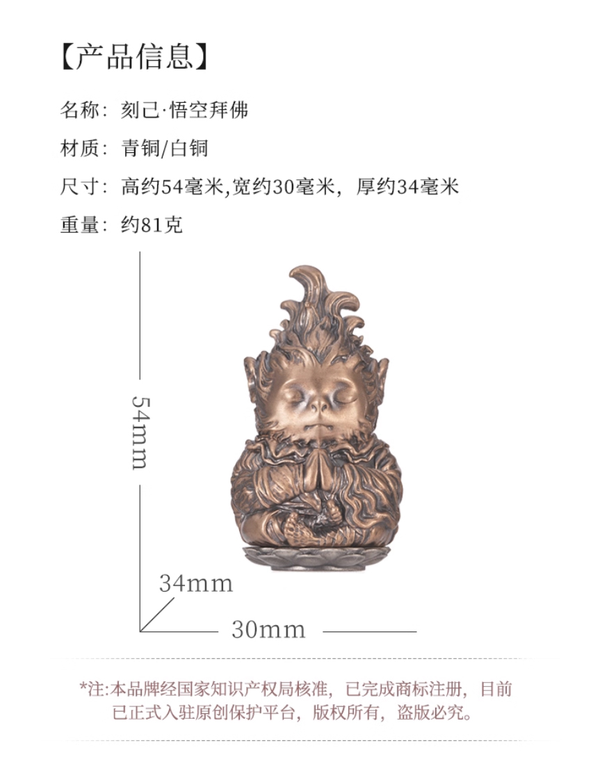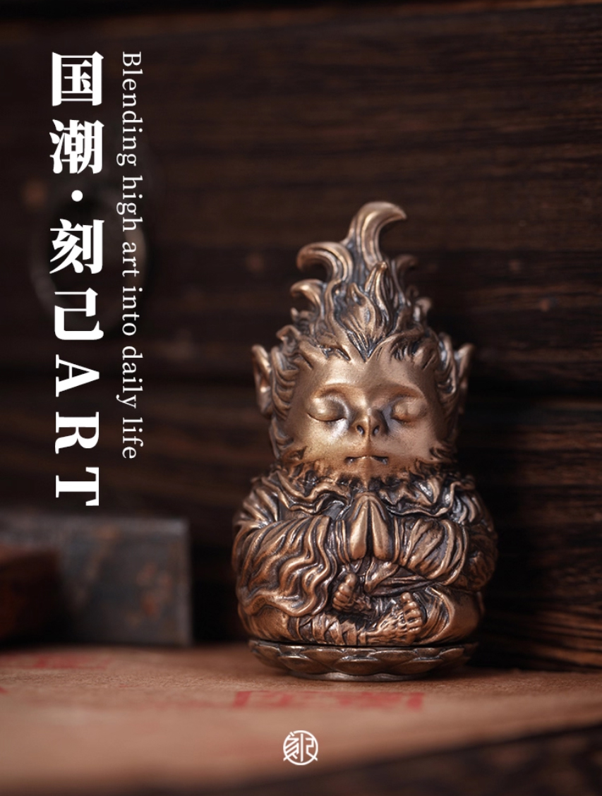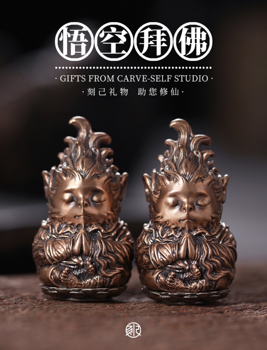 刻己 - 悟空拜佛 创意铜雕像盘玩手把件 青铜 齐天大圣创意桌面摆件节日礼物【官方授权 】【48小时发货】
