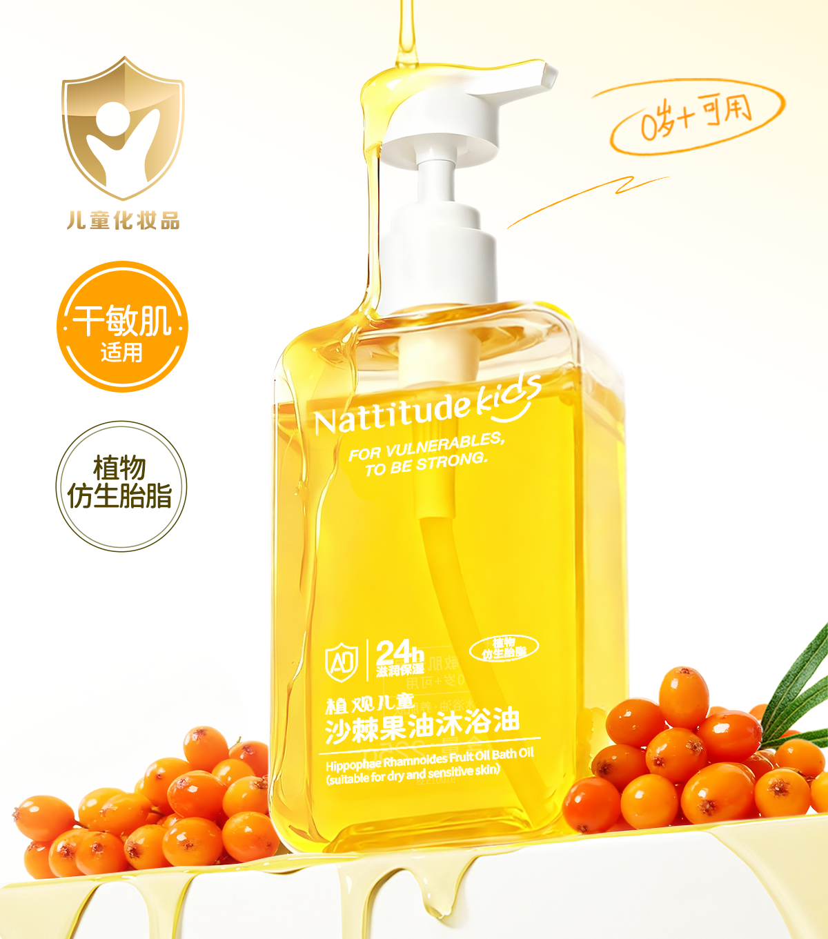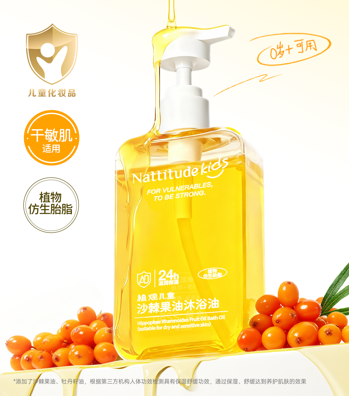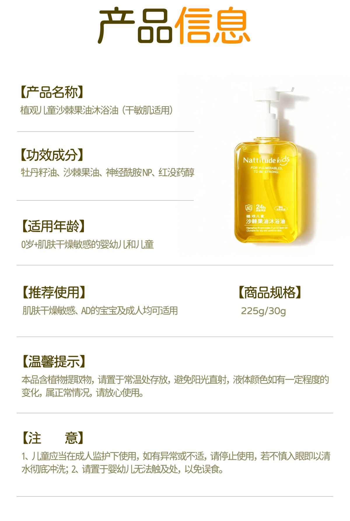 植观儿童沐浴油沙棘果油宝宝专用沐浴露秋冬季婴儿洗澡沐浴身体油(植观官方旗舰店)