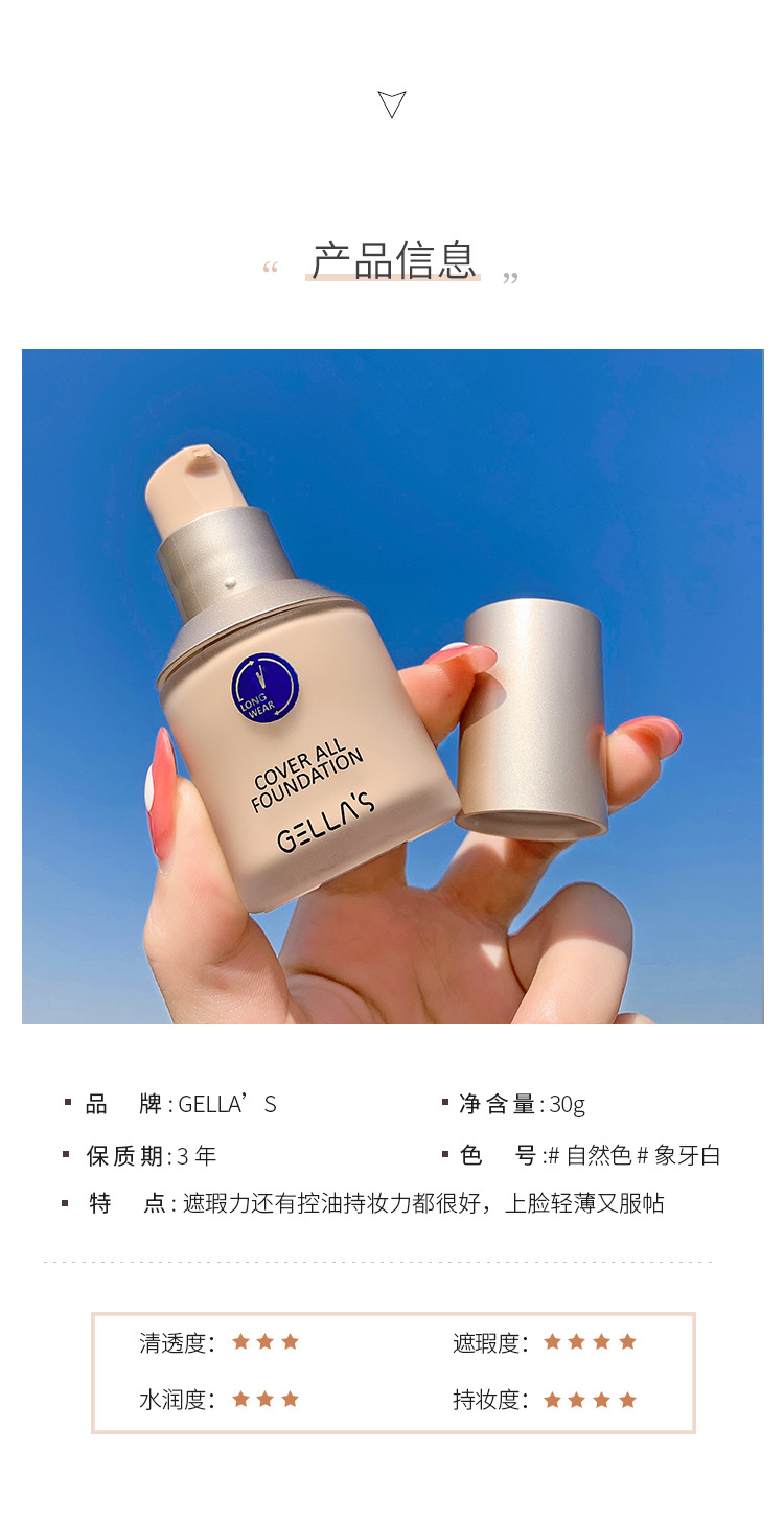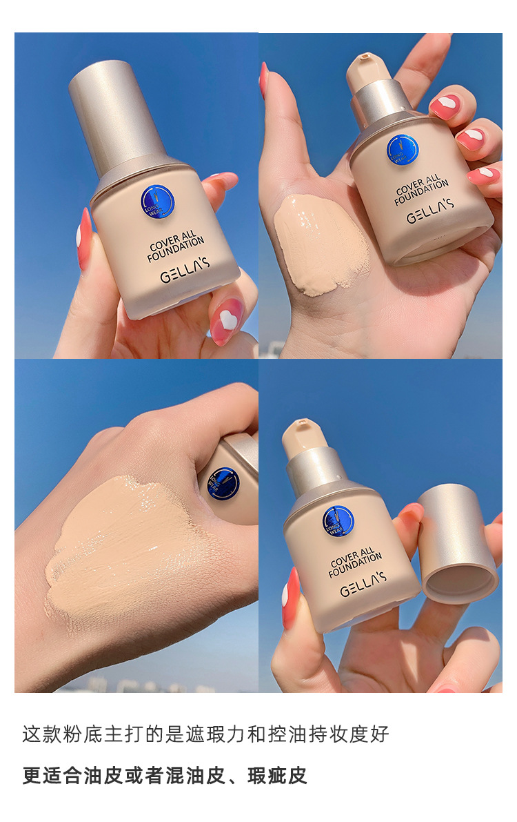 【美妆个护】小蓝盾粉底液Gella #39;s 聚焦持底液 圆瓶粉底 容易上色 易控油
