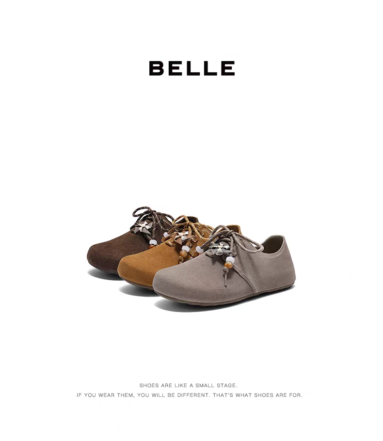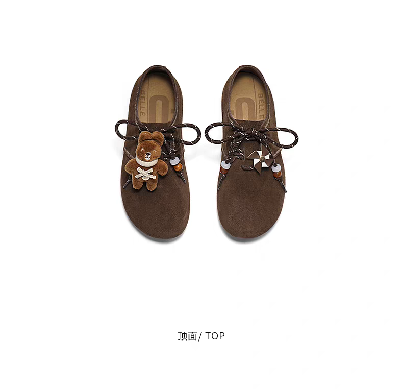 BF楼百丽糖栗吐司勃肯鞋女2025秋季新款内增高牛津深口单鞋E8G1DCM5