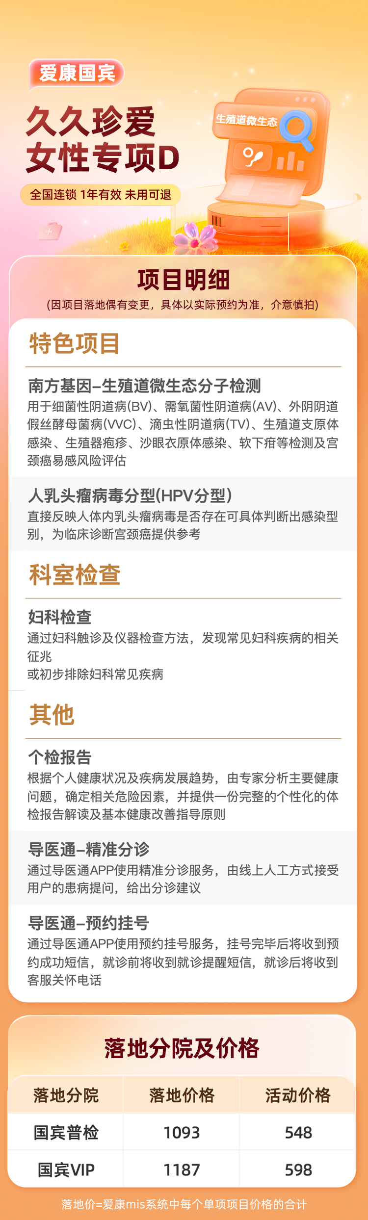 【含HPV分型+生殖道微生态检测】爱康 久久珍爱女性专项D