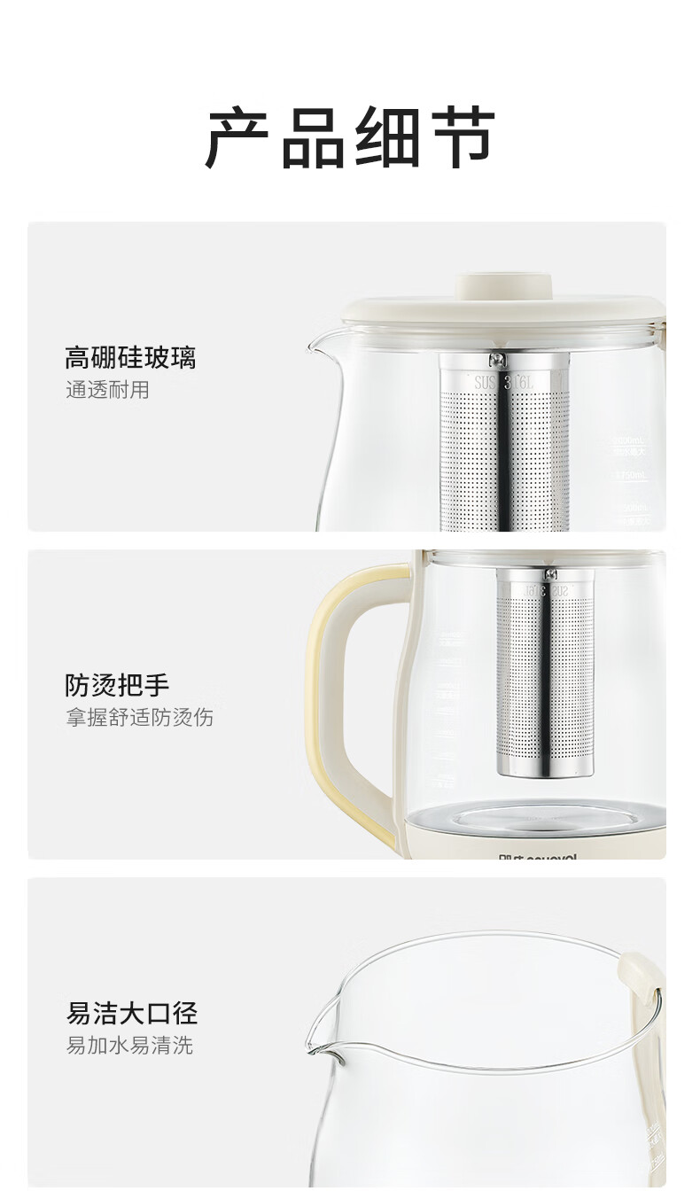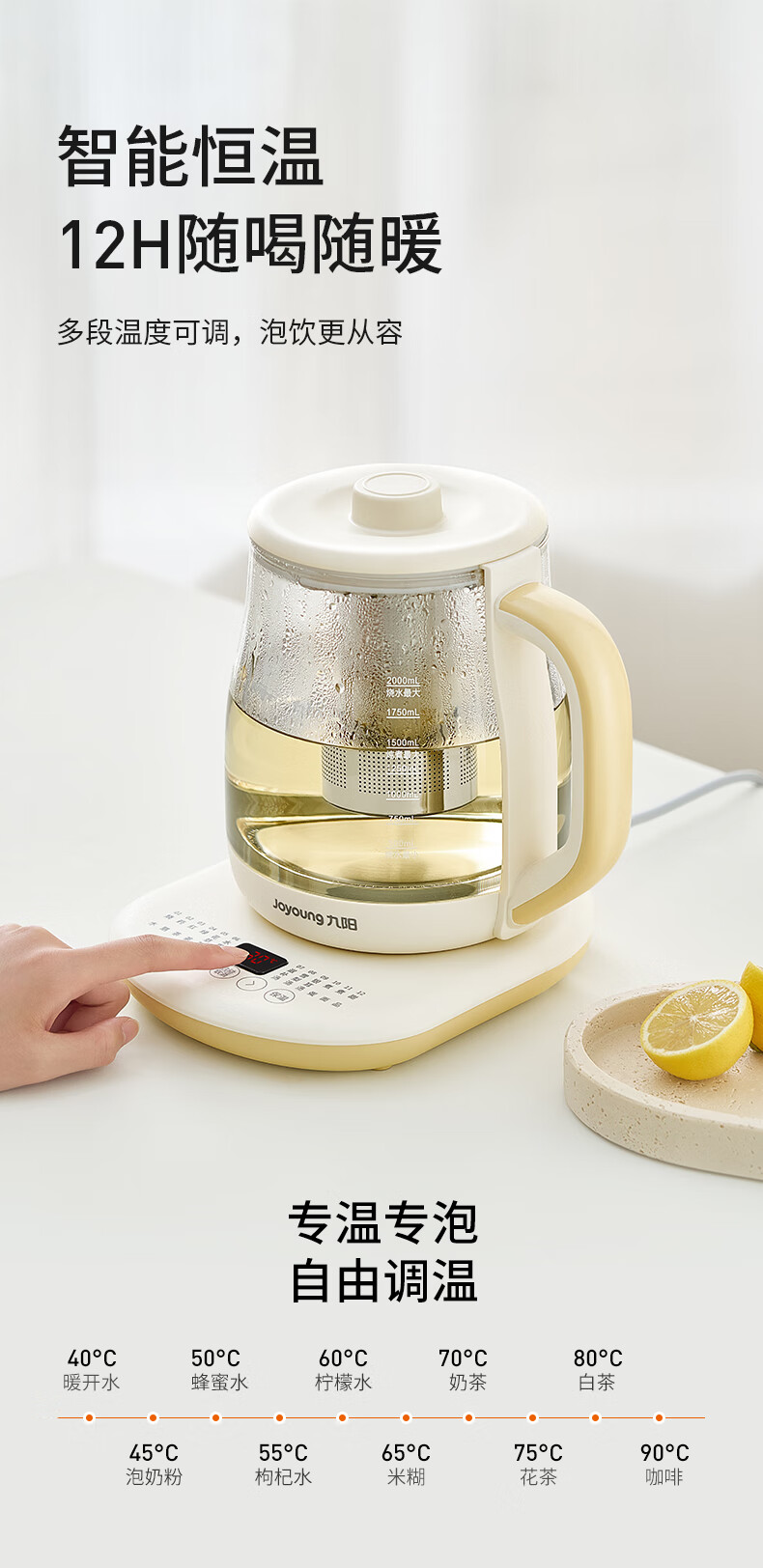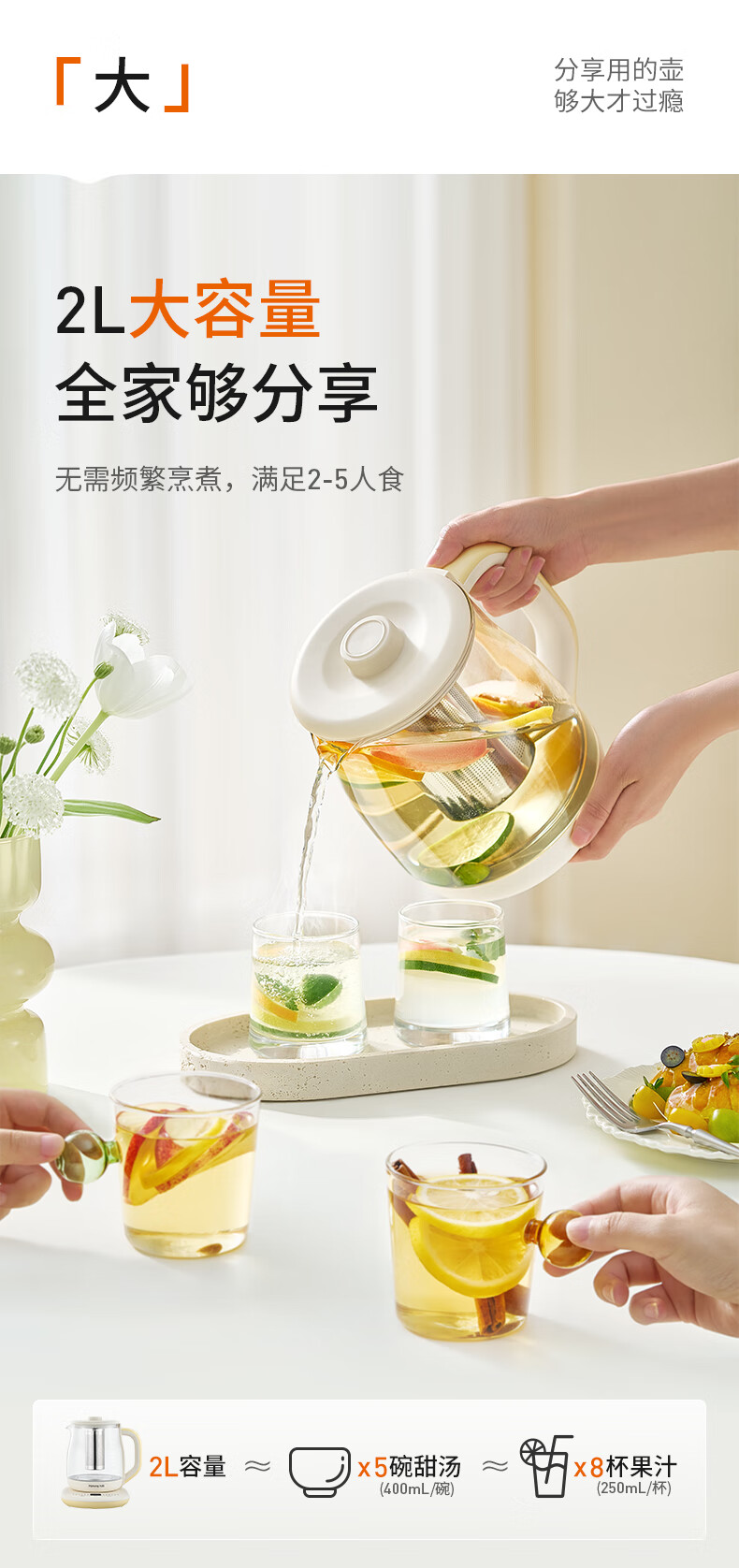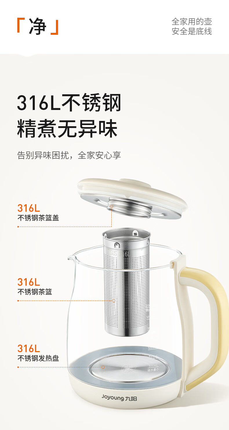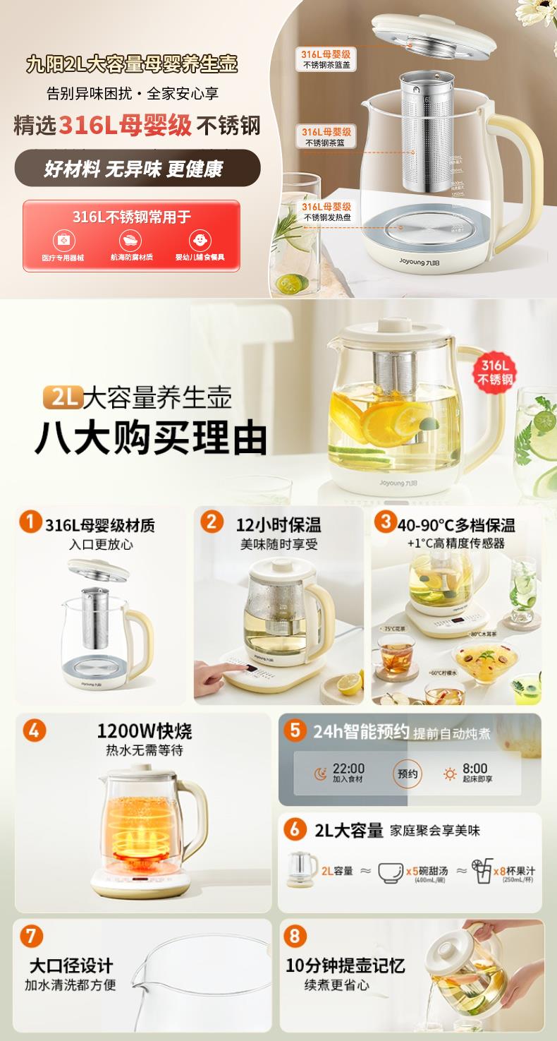 九阳2.0升L大容量养生壶煮茶器316L不锈钢茶篮电水壶花茶壶烧水壶