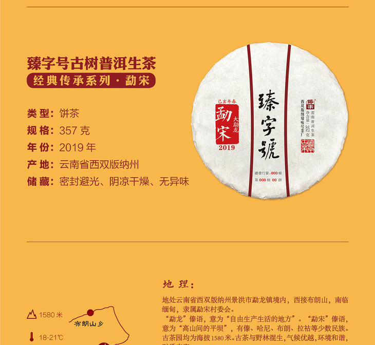 2020年臻字号 经典传承系列春 古树普洱生茶【勐宋】357g