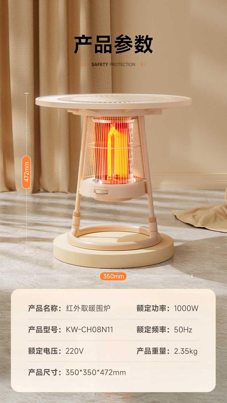 卡蛙围炉暖茶取暖器小太阳家用取暖器电红外发热速烤火炉取暖炉