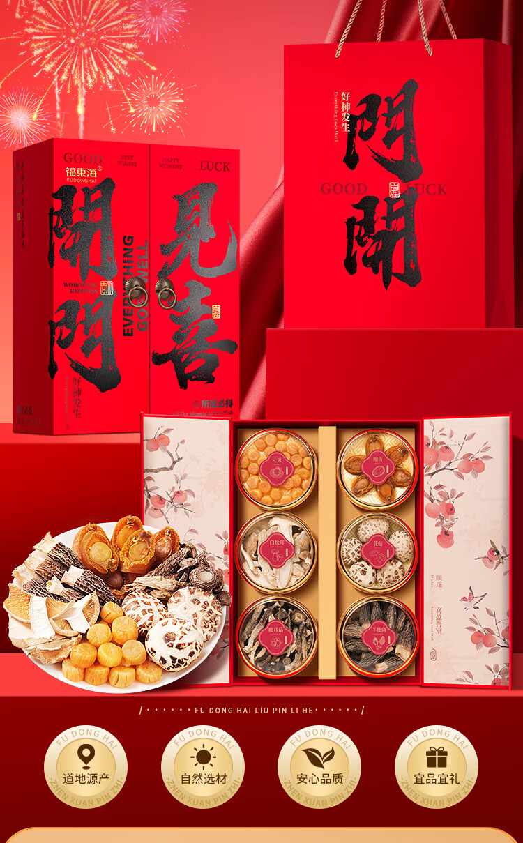 福东海【见喜】羊肚菌鲍鱼元贝花菇礼盒250克 海鲜干货菌菇料礼品送长辈