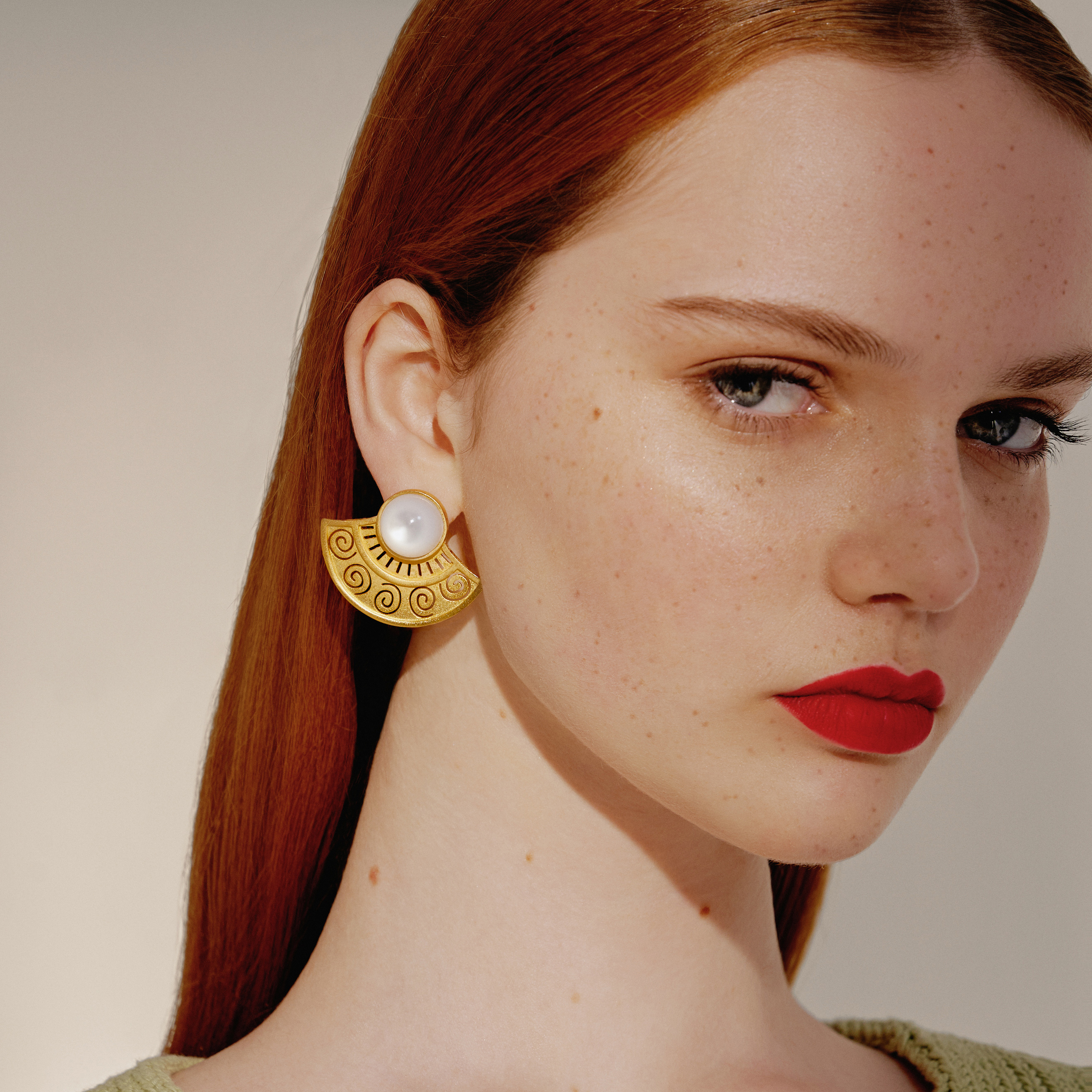 北京仓|Jude Benhalim-Mezza Sol-扇形 镂空 耳环(白色)[埃及设计师]