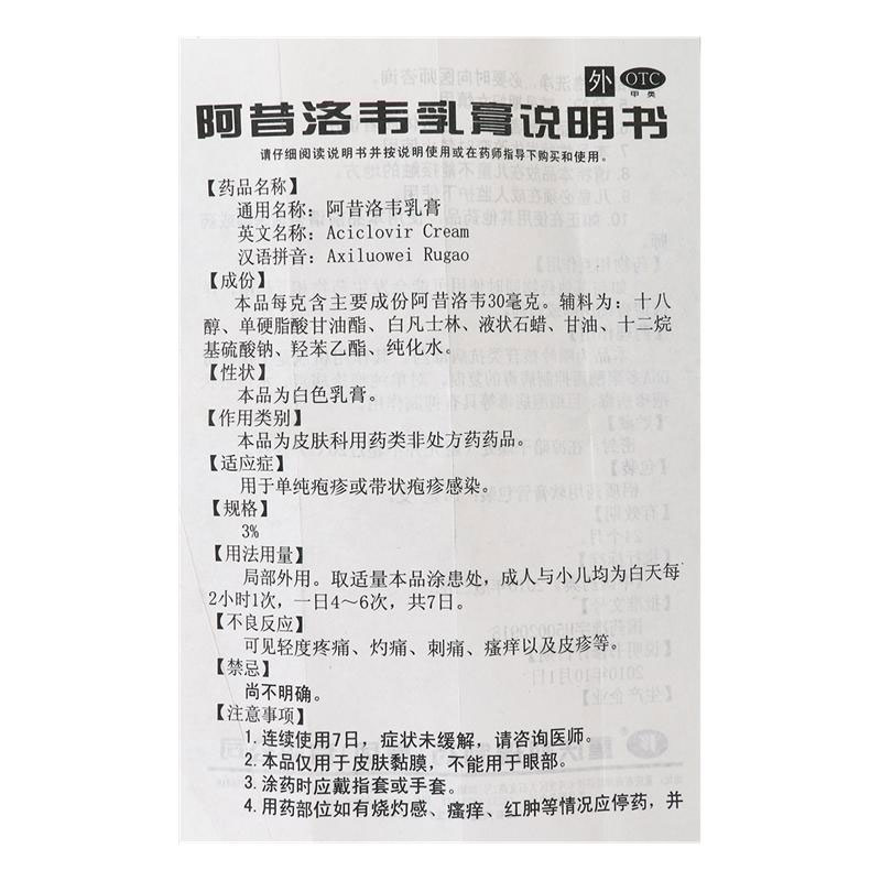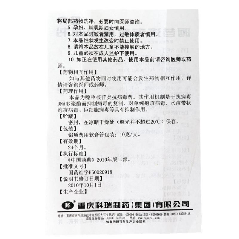 科瑞 阿昔洛韦乳膏 10g 用于单纯疱疹或带状疱疹感染