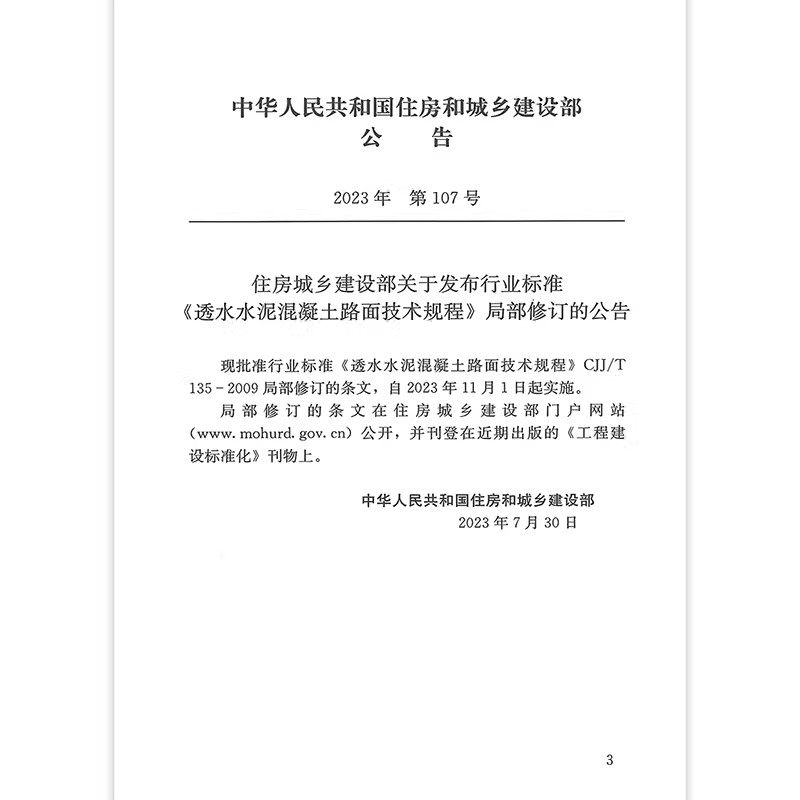 2023年新修订 CJJ/T 135-2009 透水水泥混凝土路面技术规程