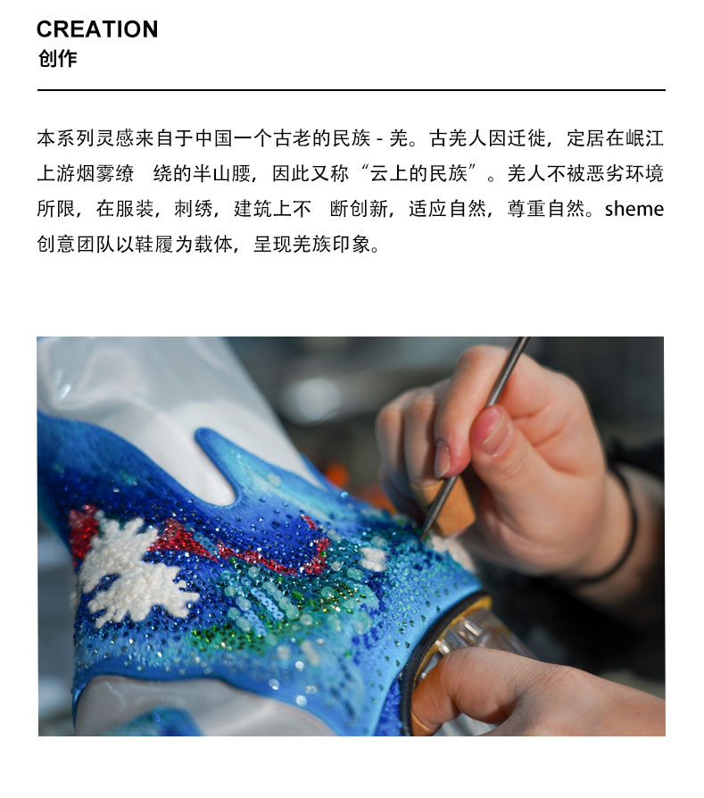 sheme羌族云上系列限量版手工刺绣烫钻方头厚水台新中式优雅单鞋可定制