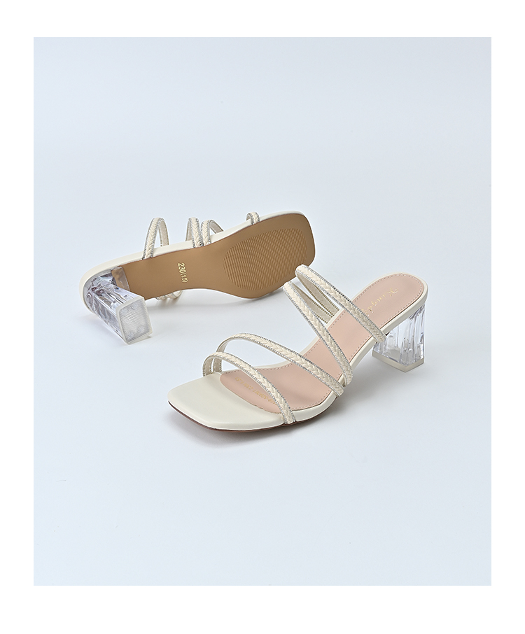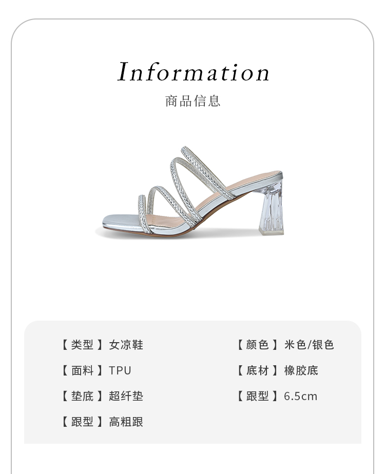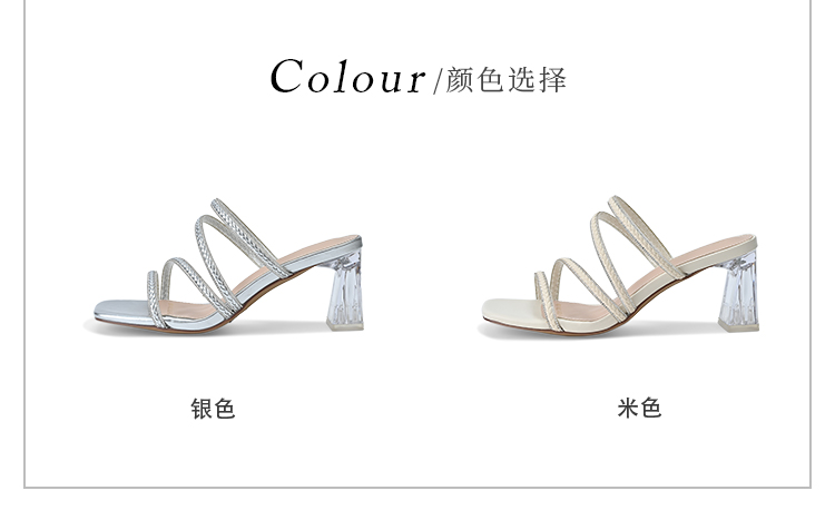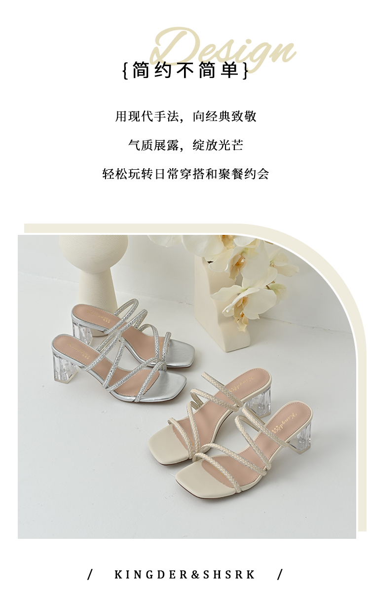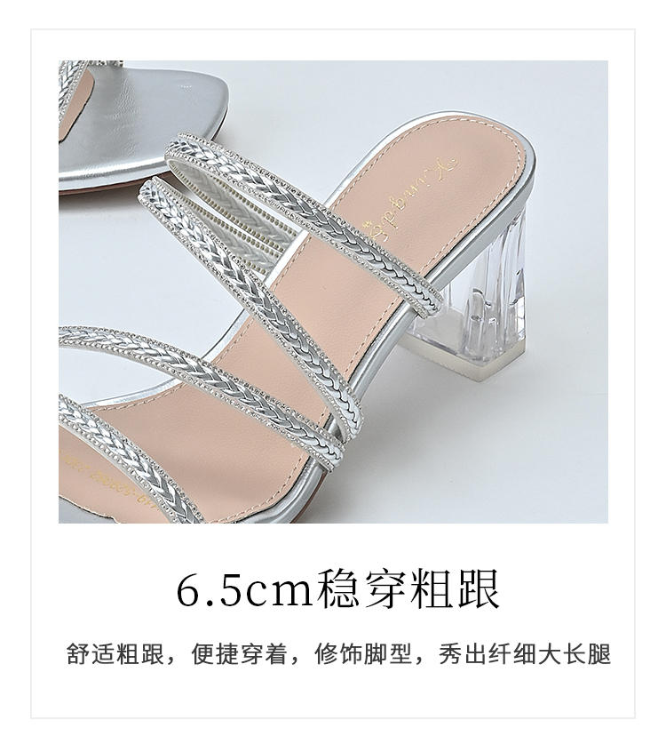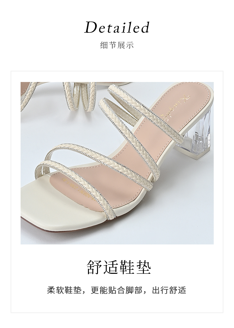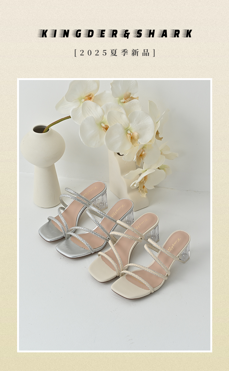 经典鲨2025夏季款时尚简约6.5cm高粗跟一字带气质水钻凉鞋女KW119-529061