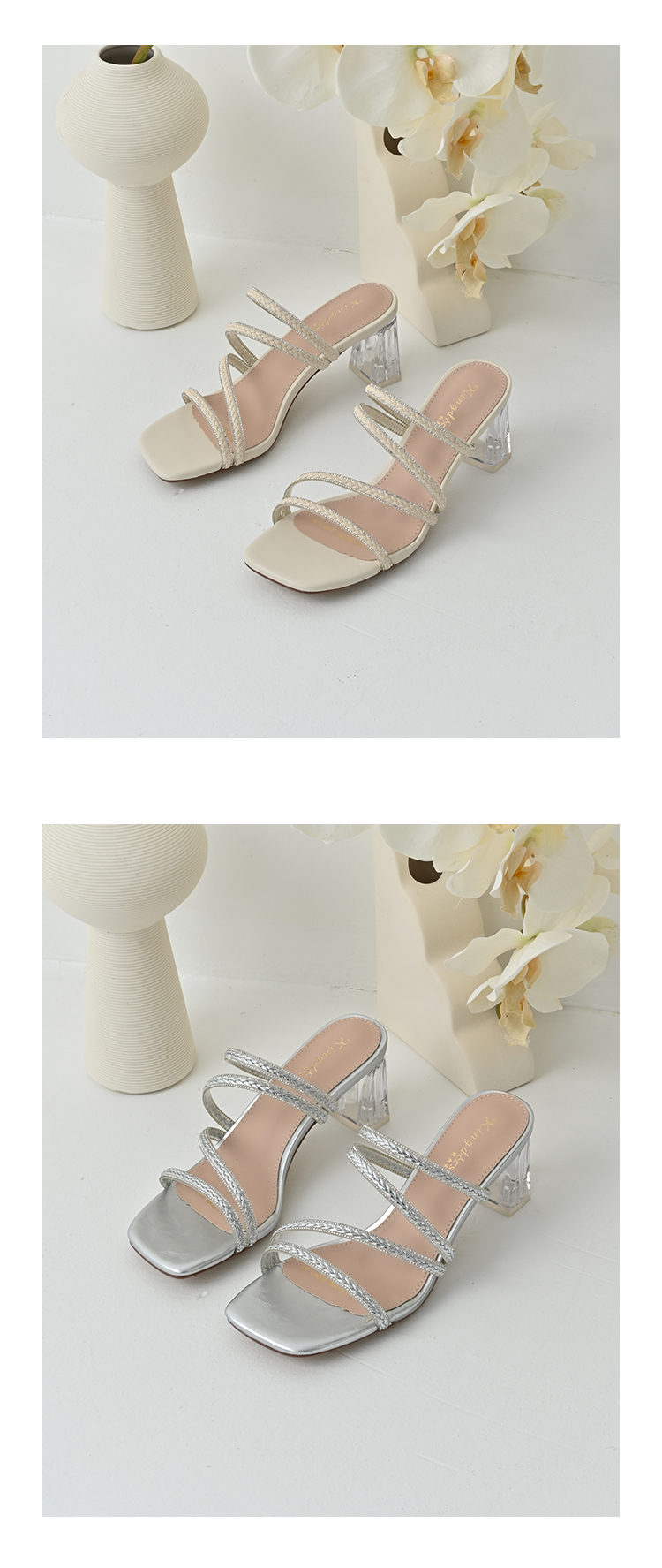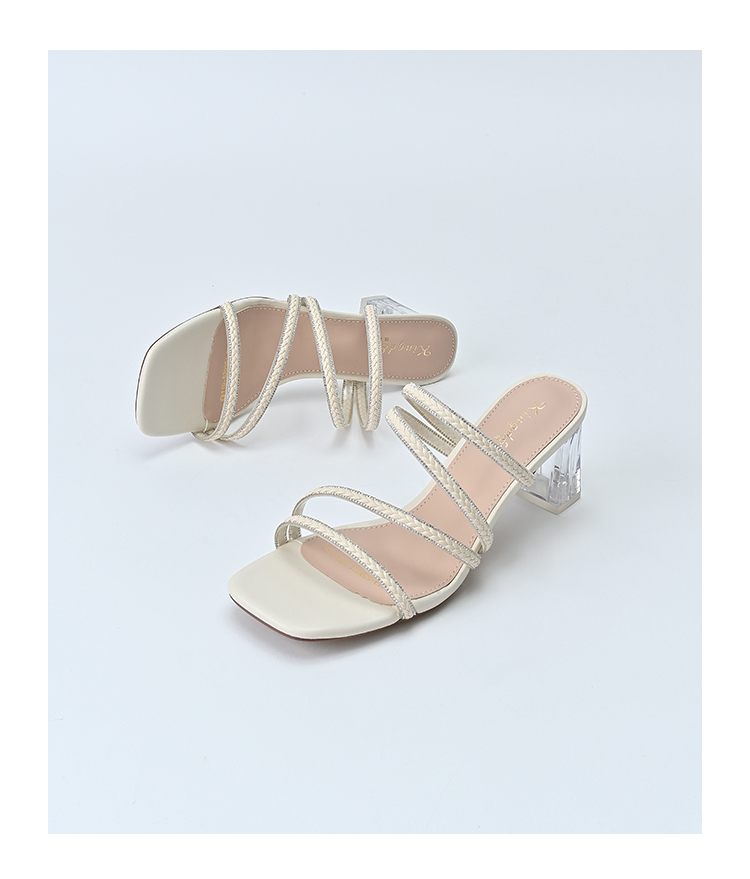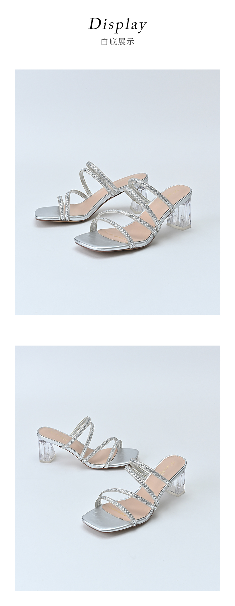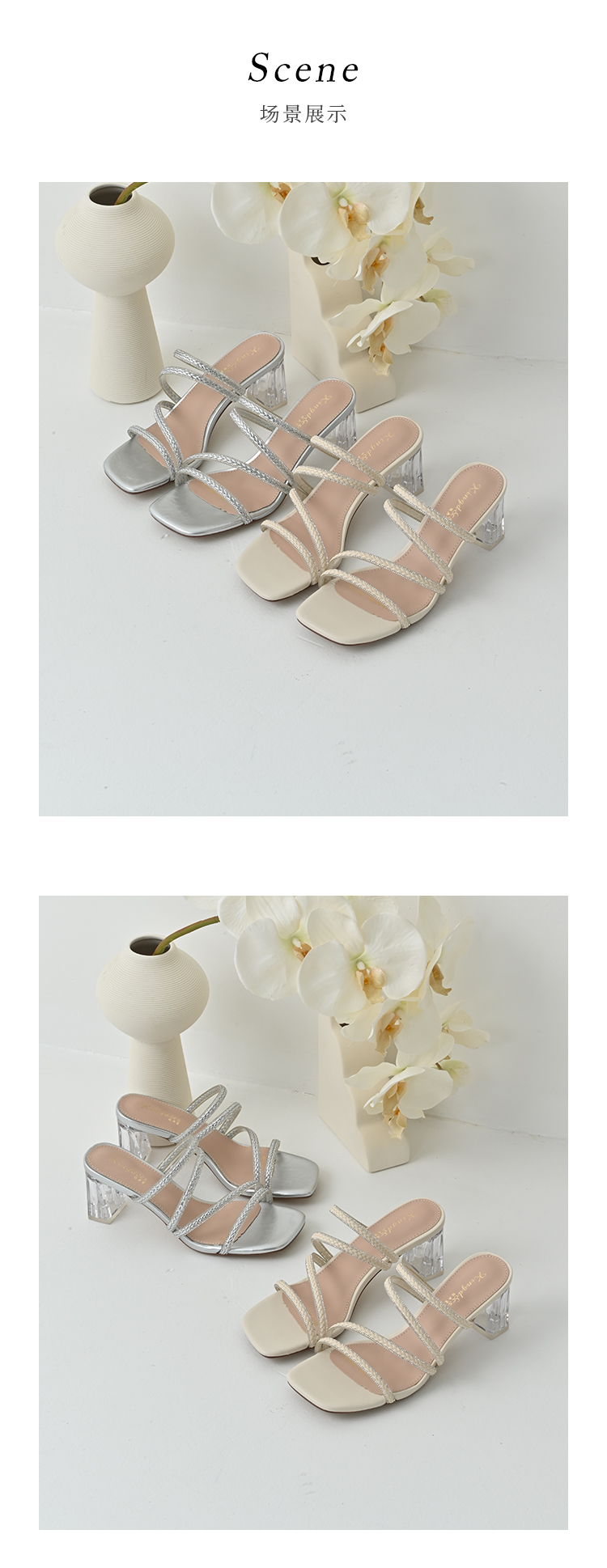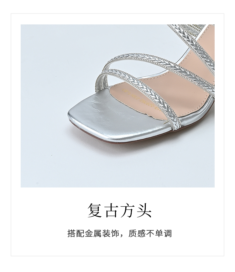 经典鲨2025夏季款时尚简约6.5cm高粗跟一字带气质水钻凉鞋女KW119-529061