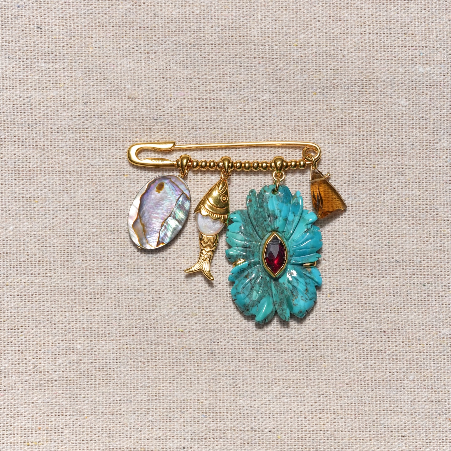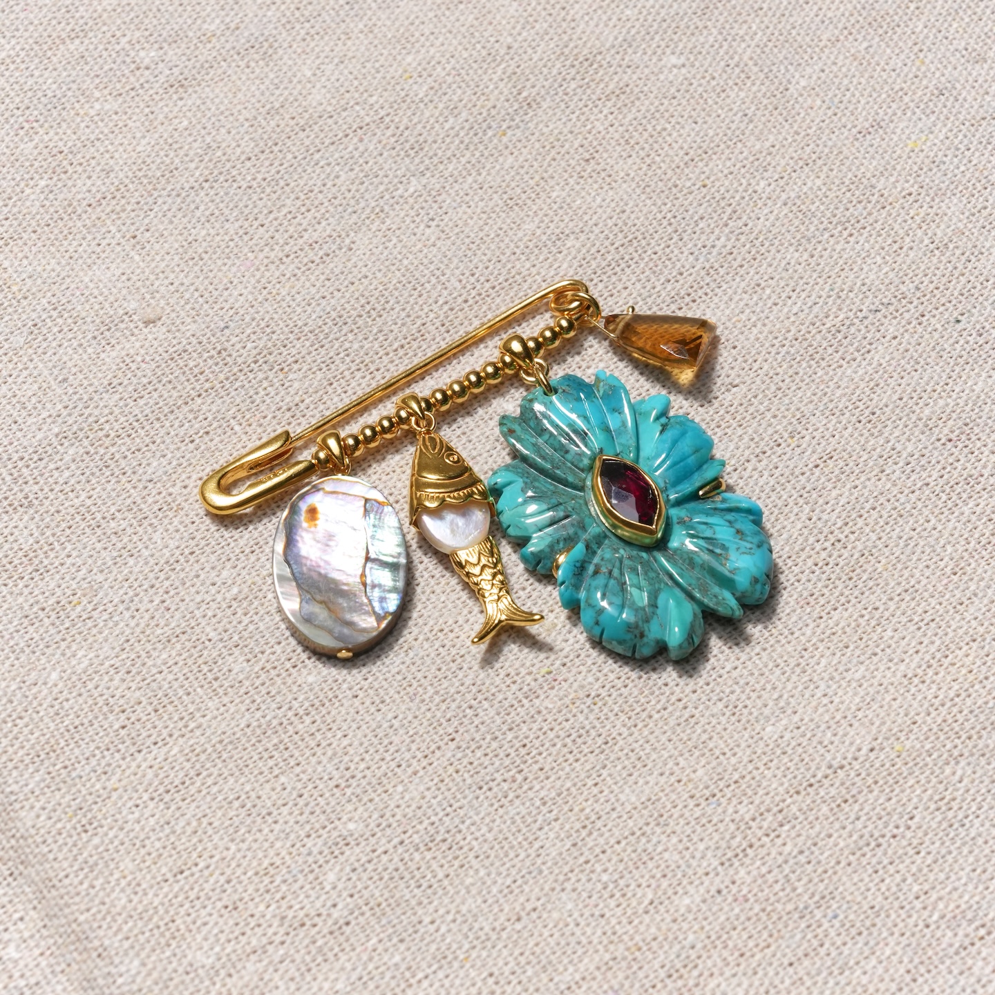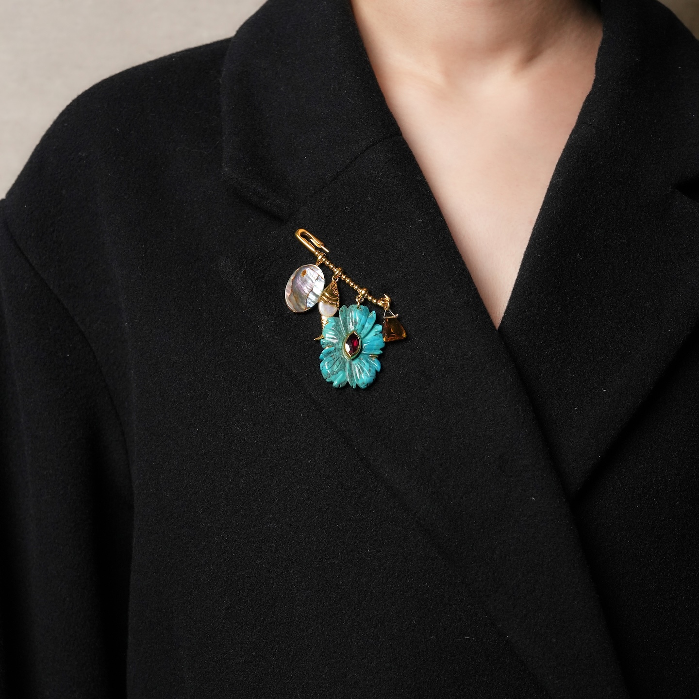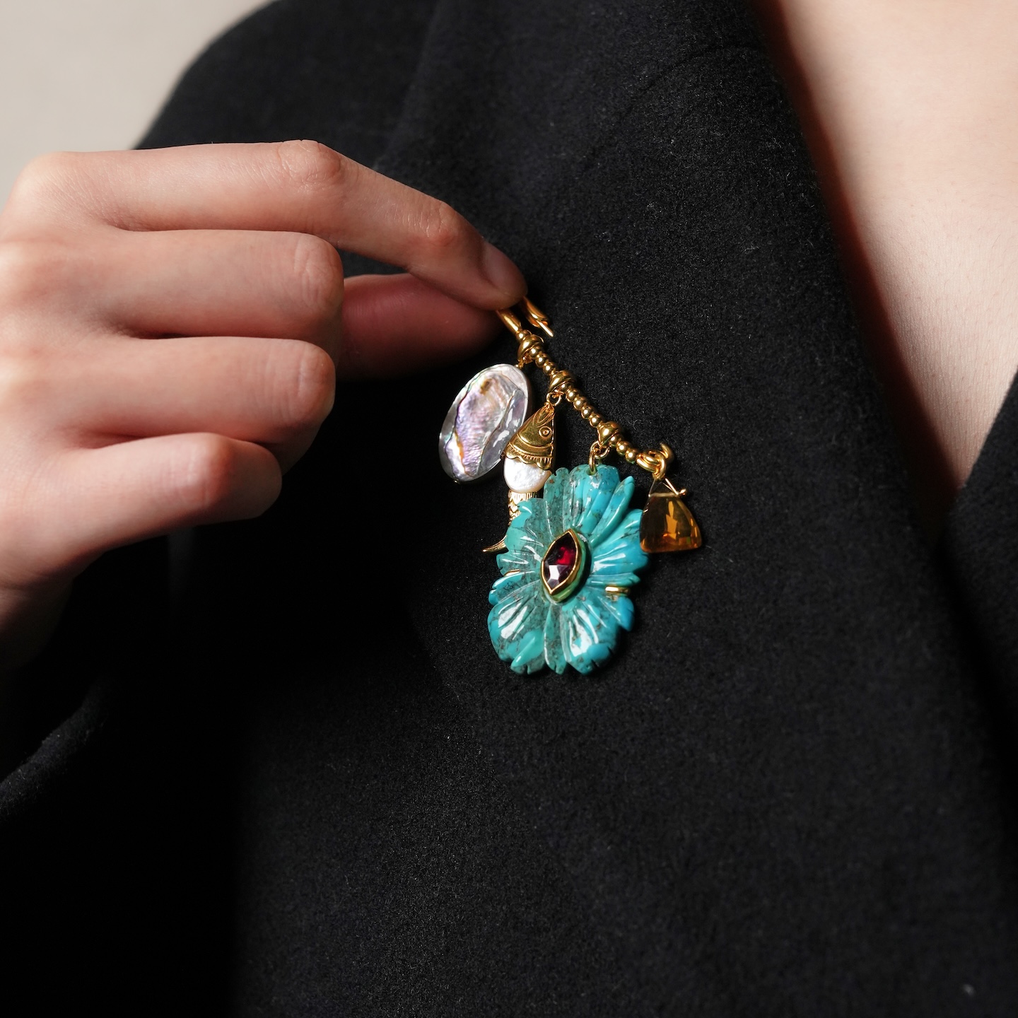 北京仓|Chan Luu-Magnolia-木兰花 绿松石 胸针[美国设计师]