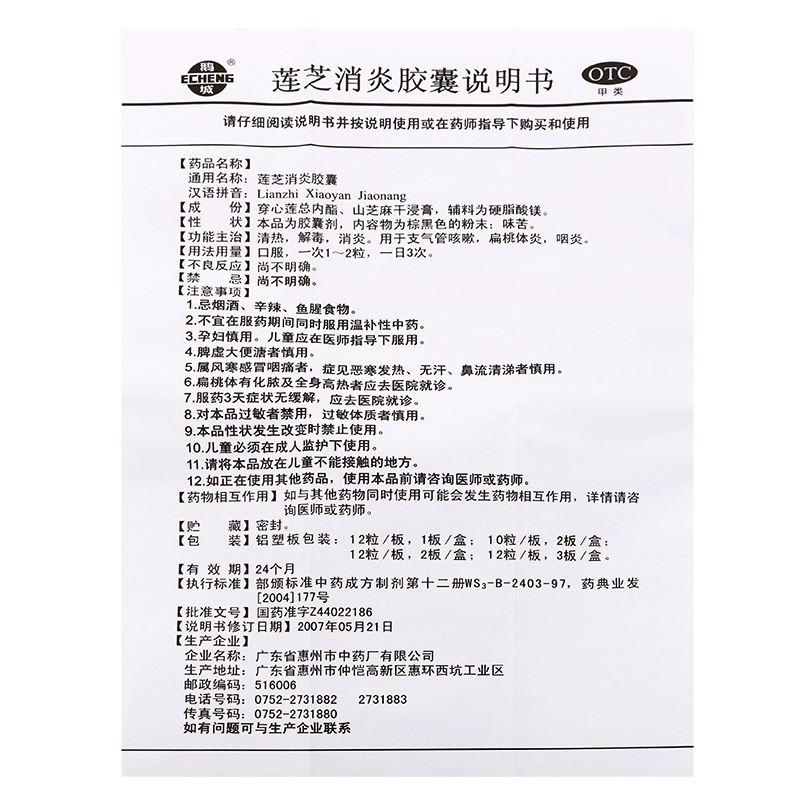 鹅城莲芝消炎胶囊12粒咽炎清热解毒支气管炎咳嗽咽喉肿痛发热面赤