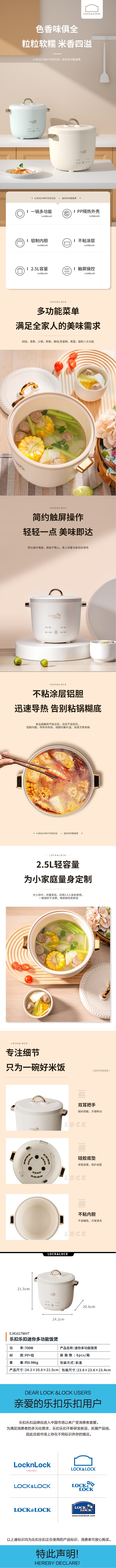 乐扣/小家电迷你多功能饭煲白色700W